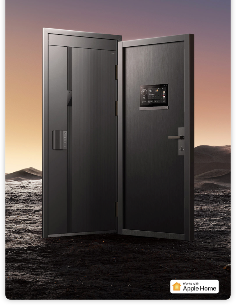 That said, one piece of hardware immediately caught my attention — even before we fully stepped into the model apartment. Right at the entrance stood the V100 Smart Door. It’s a robust piece of engineering, featuring a tamper-resistant lock, a massive 15.6-inch interior screen, ten unlocking methods, and backup battery power lasting up to one month.