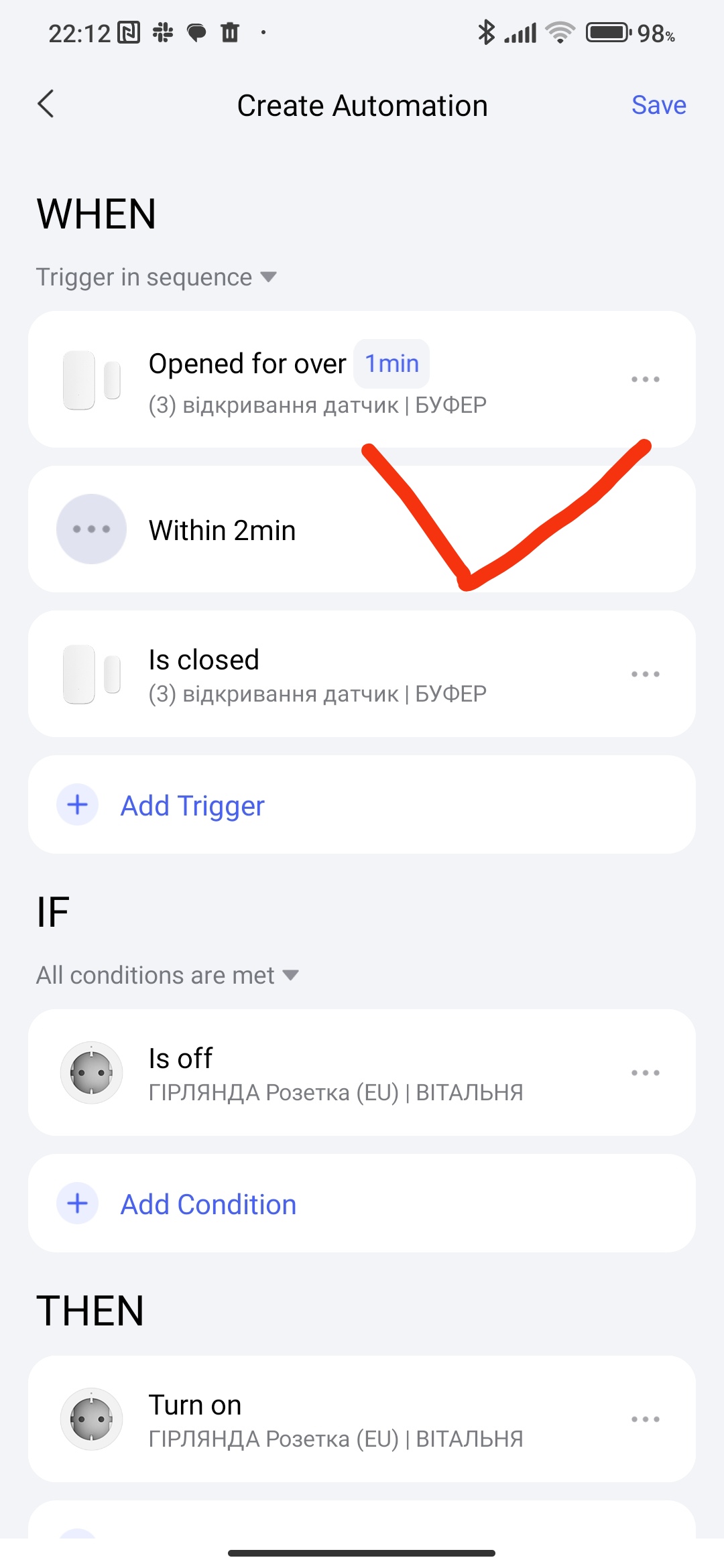→ Door and Window Sensor had been open for more than 1 minute