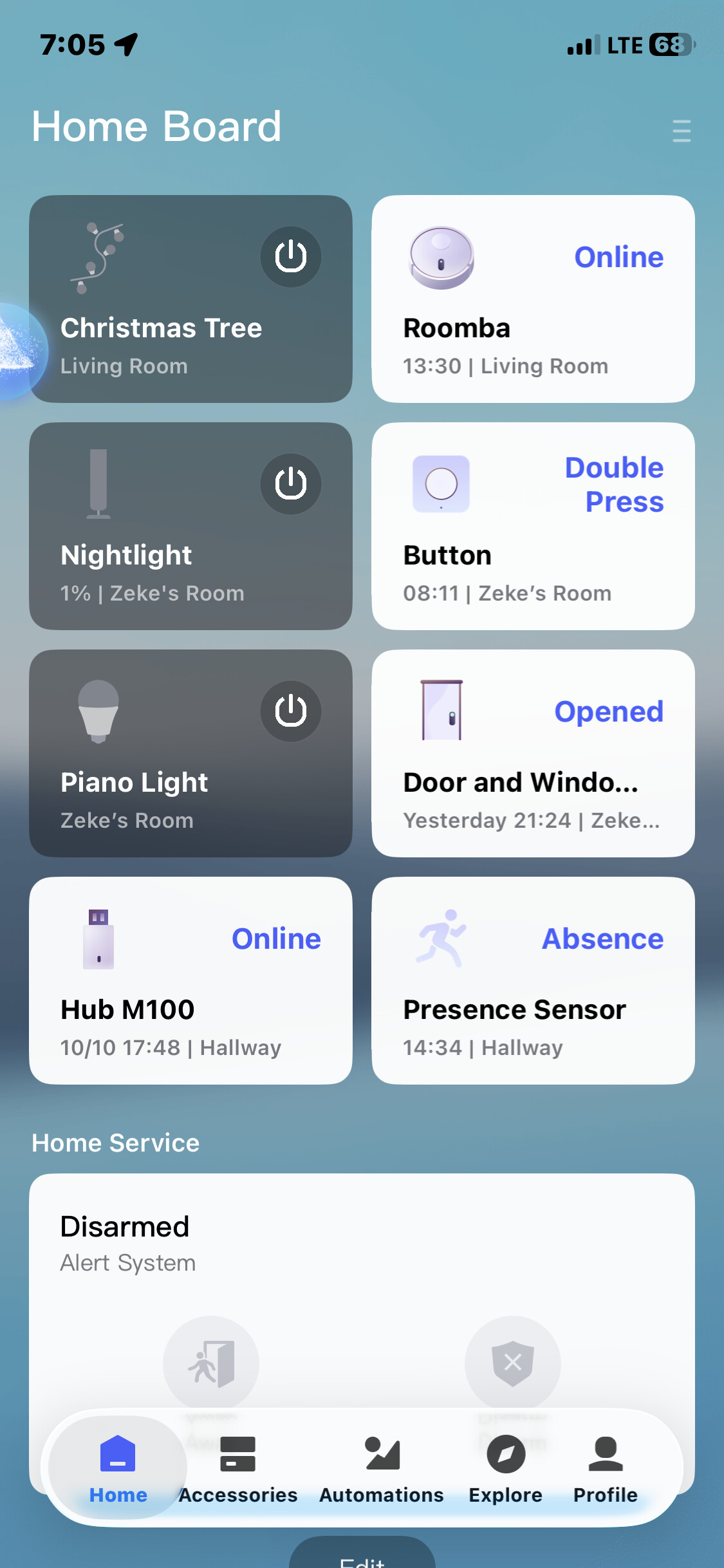 You can make the Nightlight turn on softly when the presence sensor detects movement after 10 PM, just enough light to check on the baby without waking them. When the door in Zeke’s Room closes and no presence is detected for a few minutes, the Piano Light can turn off and the Nightlight can dim for nap time. The button could be your quick bedtime shortcut, for example one tap turns off all lights and a double tap sets the Nightlight to a warm low level.