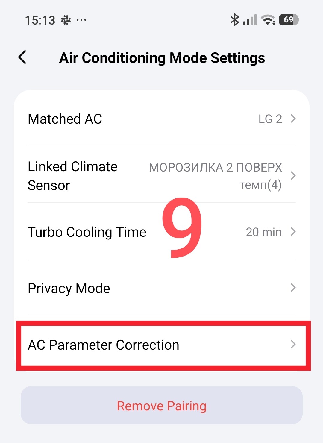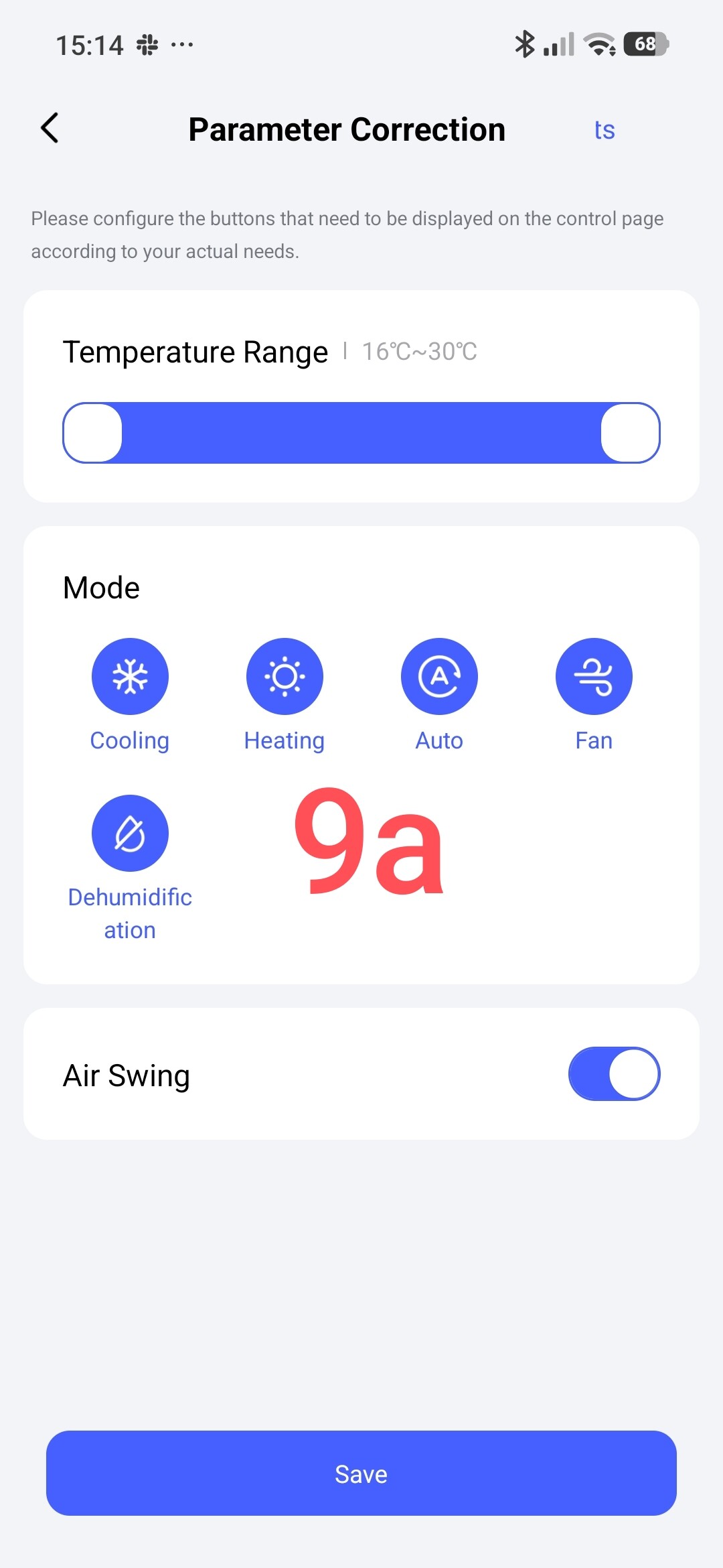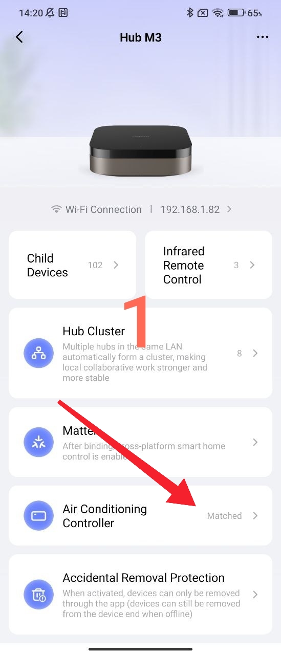 If we open the M3 gateway settings, we see the “air conditioning mode” section on the first page.