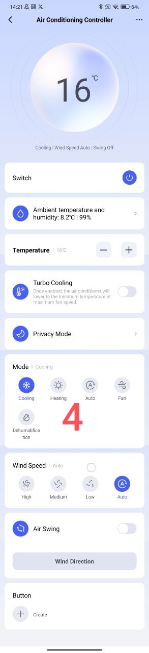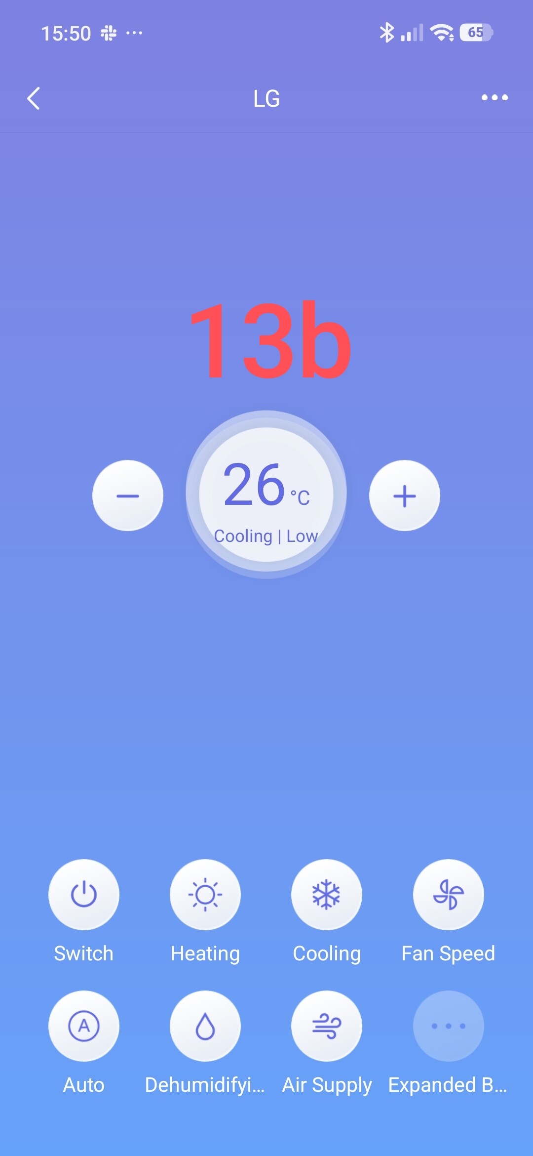 After completing the settings, we get a virtual LG air conditioner control remote control.