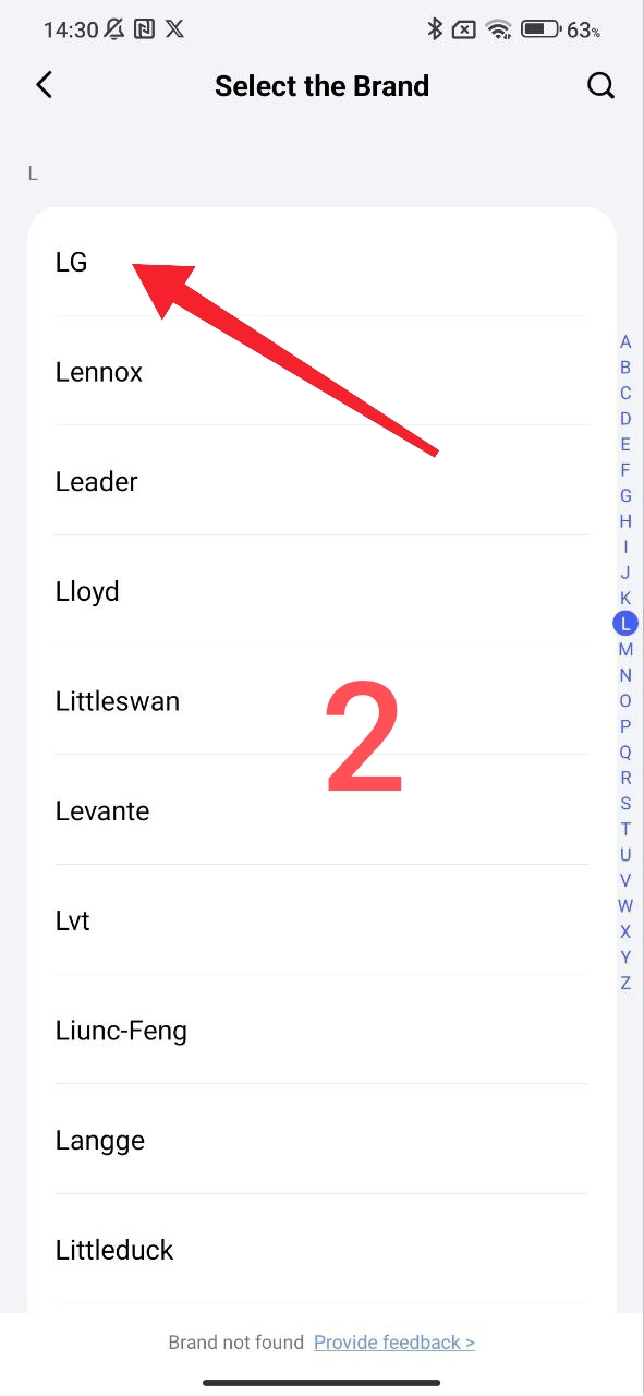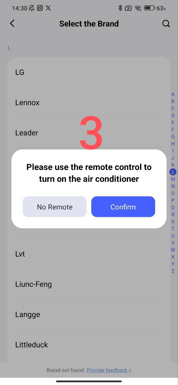 By entering this setting, we will see a selection of available air conditioners alphabetically.