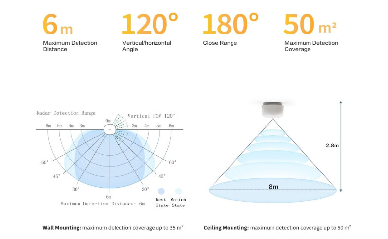Based on my usage experience, as shown in the figure, within the detection range of ±60 degrees, both the “human presence trigger” and “human presence maintenance” functions work very well.