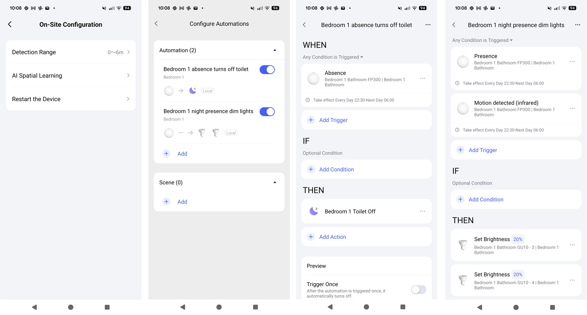For this beta test, I installed the FP300 in my en-suite bathroom, a space that perfectly highlights its strengths. My goal was to automate the lighting — turning it on and off intelligently — while addressing a recurring issue: my partner’s late-night bathroom visits often triggered bright lights that woke me up.