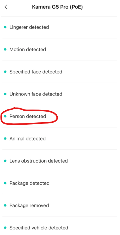 @rincon_carlos You seem to be experiencing an issue with the G5 Pro POE not having multiple detection features (person, package, pet) in HomeKit as it does in the Aqara app. You can contact customer support for assistance. Contact the Aqara Home App Customer Service Team (Profile> Help & Feedback > Customer Service) or scan the QR code: