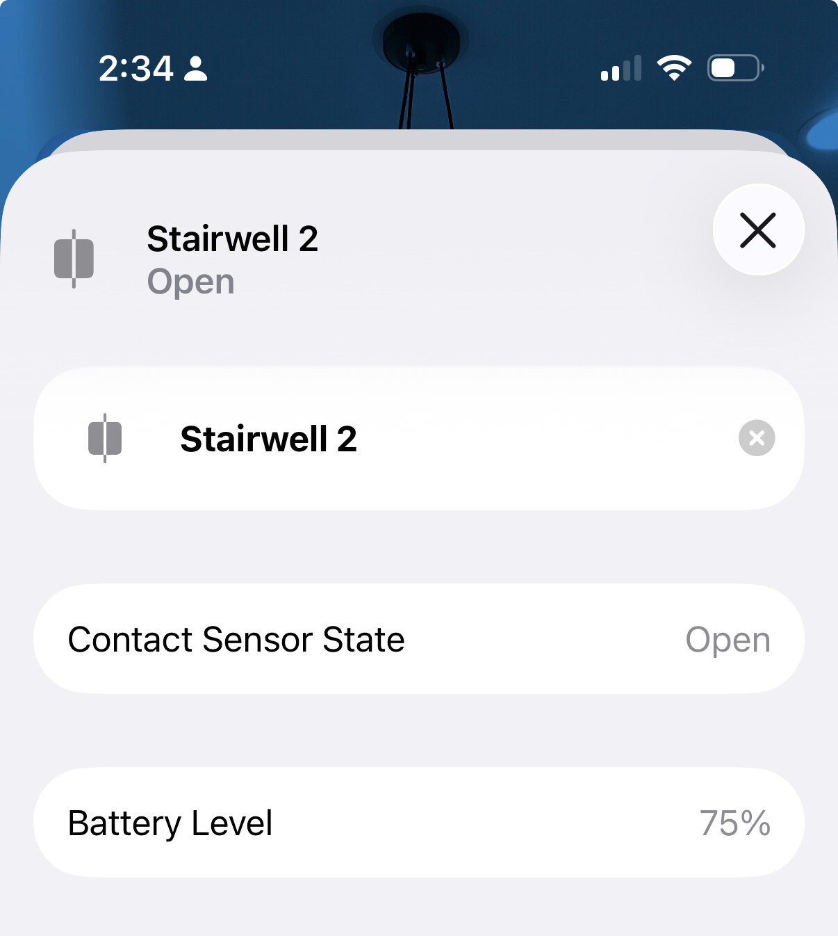 If I select the room with the P2 and then press and hold the sensor’s lux value at the top for a few seconds, a window pops up showing the current battery level.