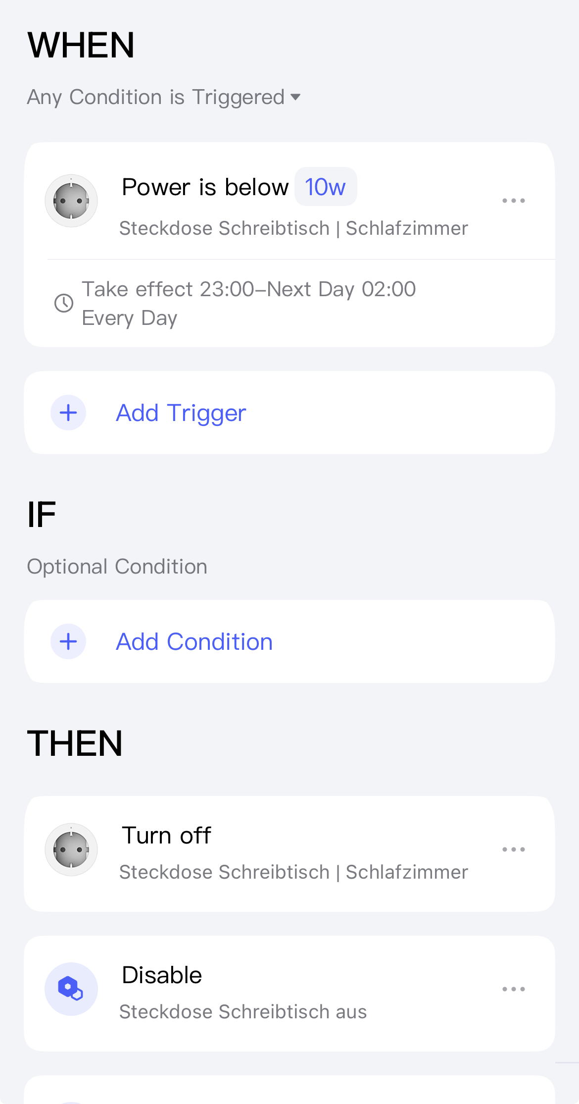 Before raising a question with Aqara specialists, you can provide a screenshot of the automations (conditions available to you) from the WHEN and IF sections.