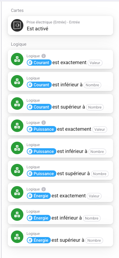 | 8 | Energy becomes greater than X kWh | A defined amount of energy is reached. |