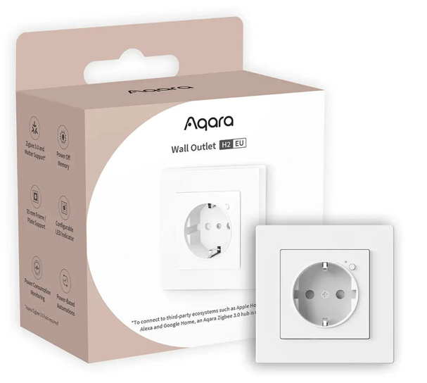 The **Aqara Smart Plug H2 EU ** is a smart power plug based on the Zigbee 3.0 protocol. It allows you to control the power supply of an electrical device and to measure key data such as power (W), current (A) and energy consumption (kWh). These measurements make it an excellent entry point for energy-based automations.