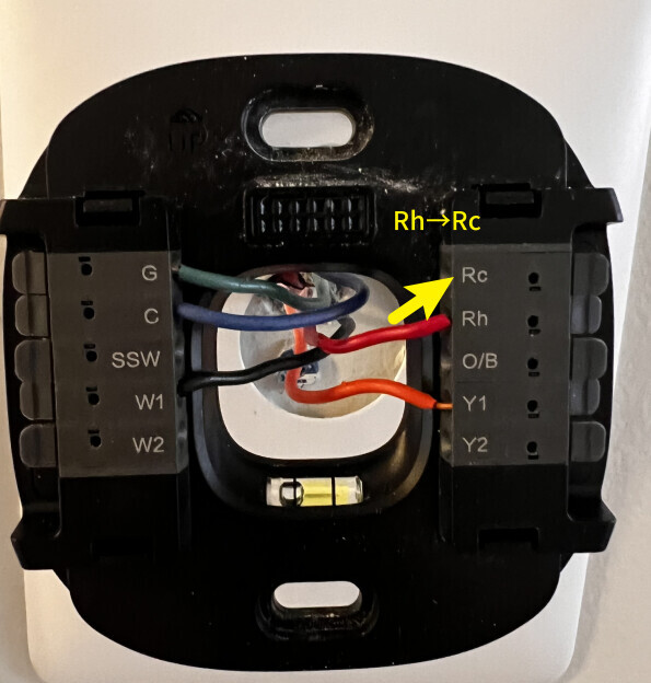 Answer: Move the Rh wire to the Rc terminal for power. W200 uses the Rc terminal for single‑wire power input.