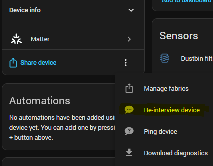 Looking at the screen grabs, one difference is that mine is connected through the Hub M3 - it is that which was “Matter” discovered and as per your instructions I tried re-interviewing.
