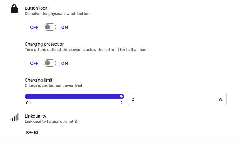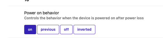 - Power-Off Memory: You choose whether the outlet should stay off or turn back on after a power failure. This is a classic feature, but there is a difference here between the Aqara app and Z2M: in Zigbee2MQTT, a fourth option is offered—“Invert”—which means that when power returns, the outlet takes the opposite state it had at the moment of the cut.