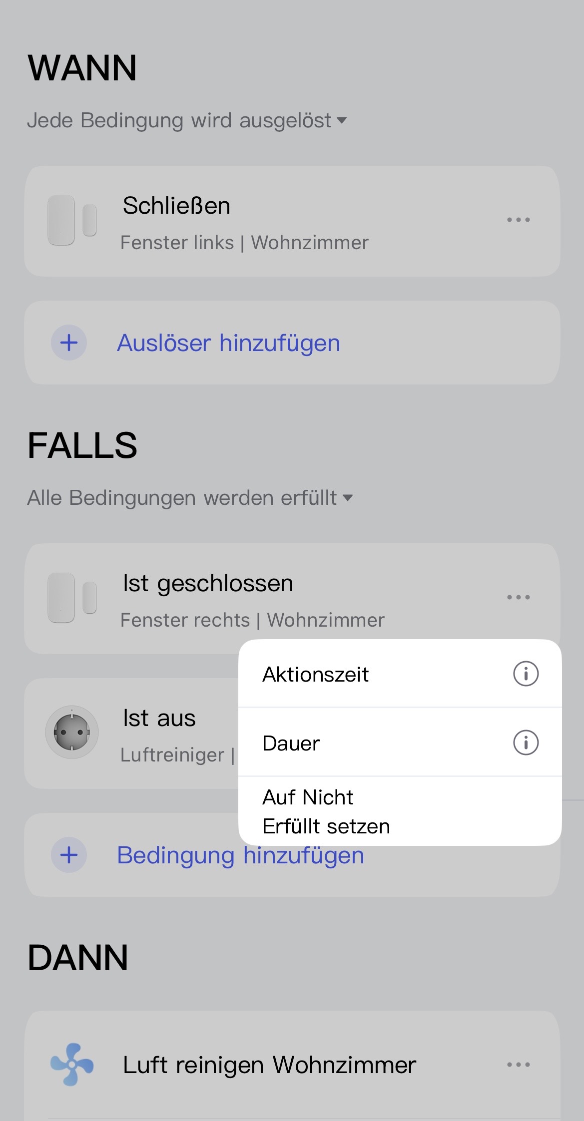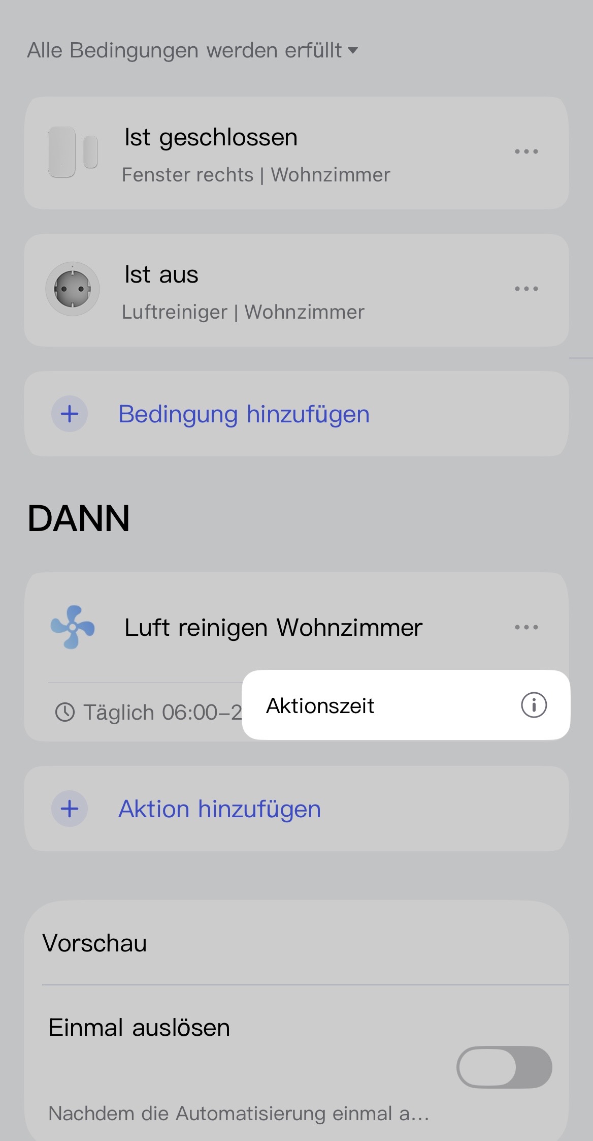 Incidentally, I find the behavior of the action time somewhat illogical. If I have a true condition and set a time for it, I would have expected the condition to be checked only at the set time. However, it seems that the condition is is set to false outside the set time. Therefore, something like
