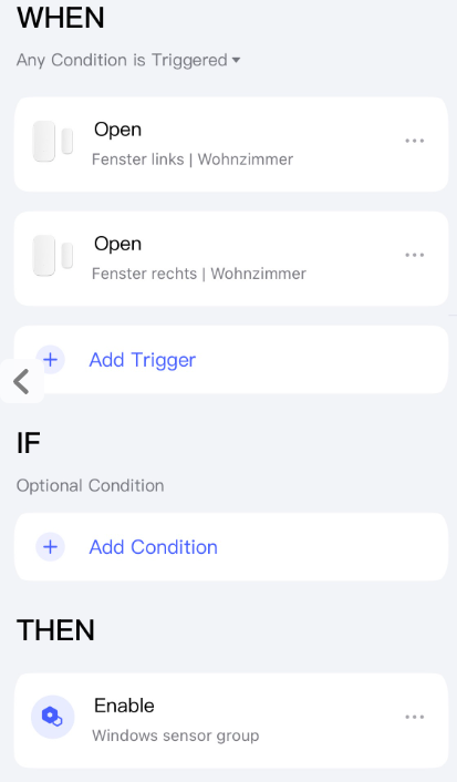 Do not forget to set the initial status of the automation depending on the current status of the sensors. Set the automation to deactivated if all windows are closed.