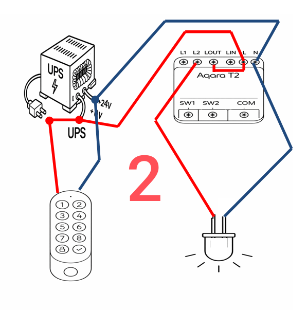 To provide the U200 lock keypad and G400 video calls, I use a mini UPS from which I supply power to these devices. I had the idea to use a T2 relay to create an alarm about the status of the door lock.