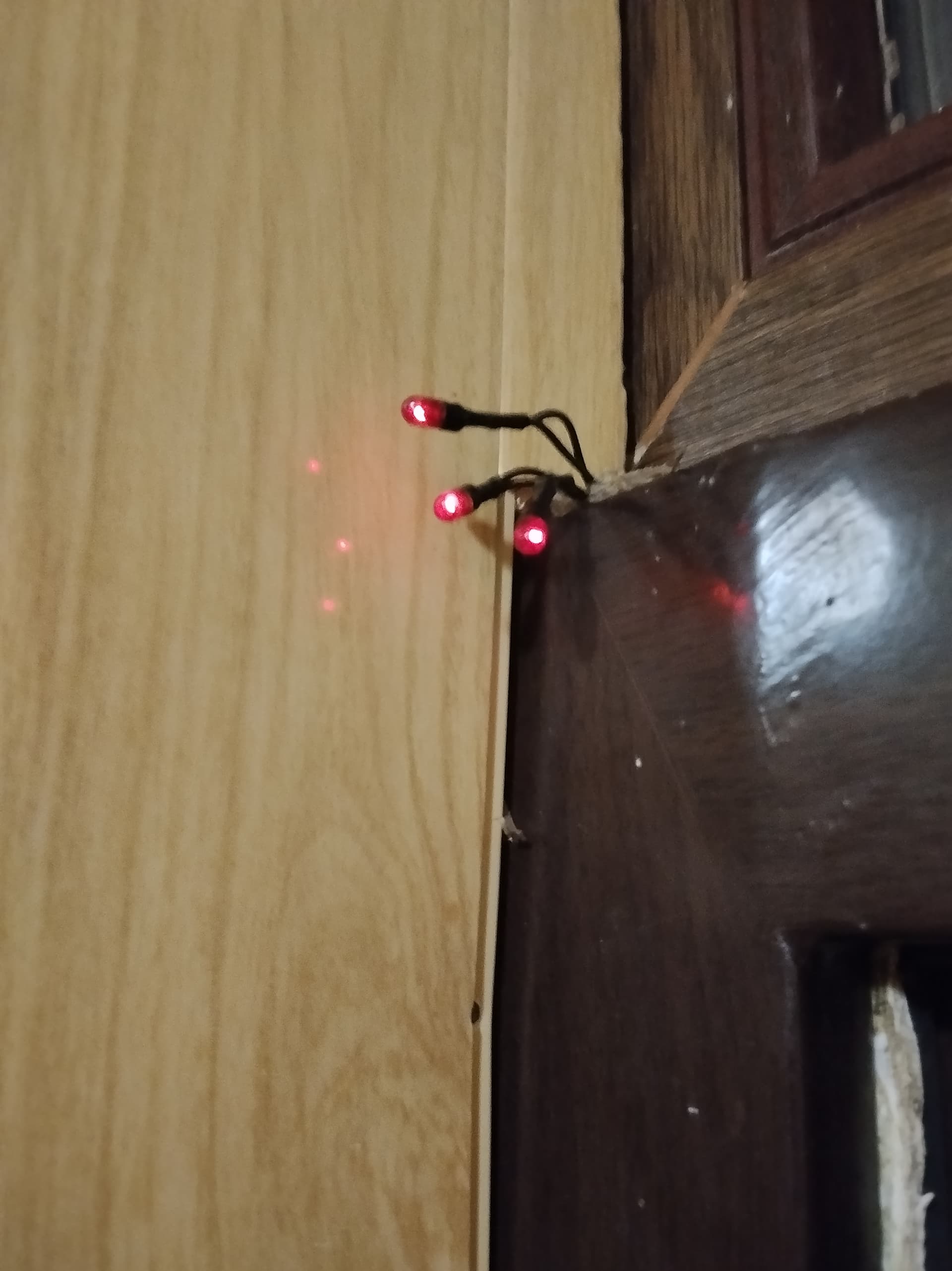 I placed the indicator lights above the door using thin wires so that they do not “press” on home users.