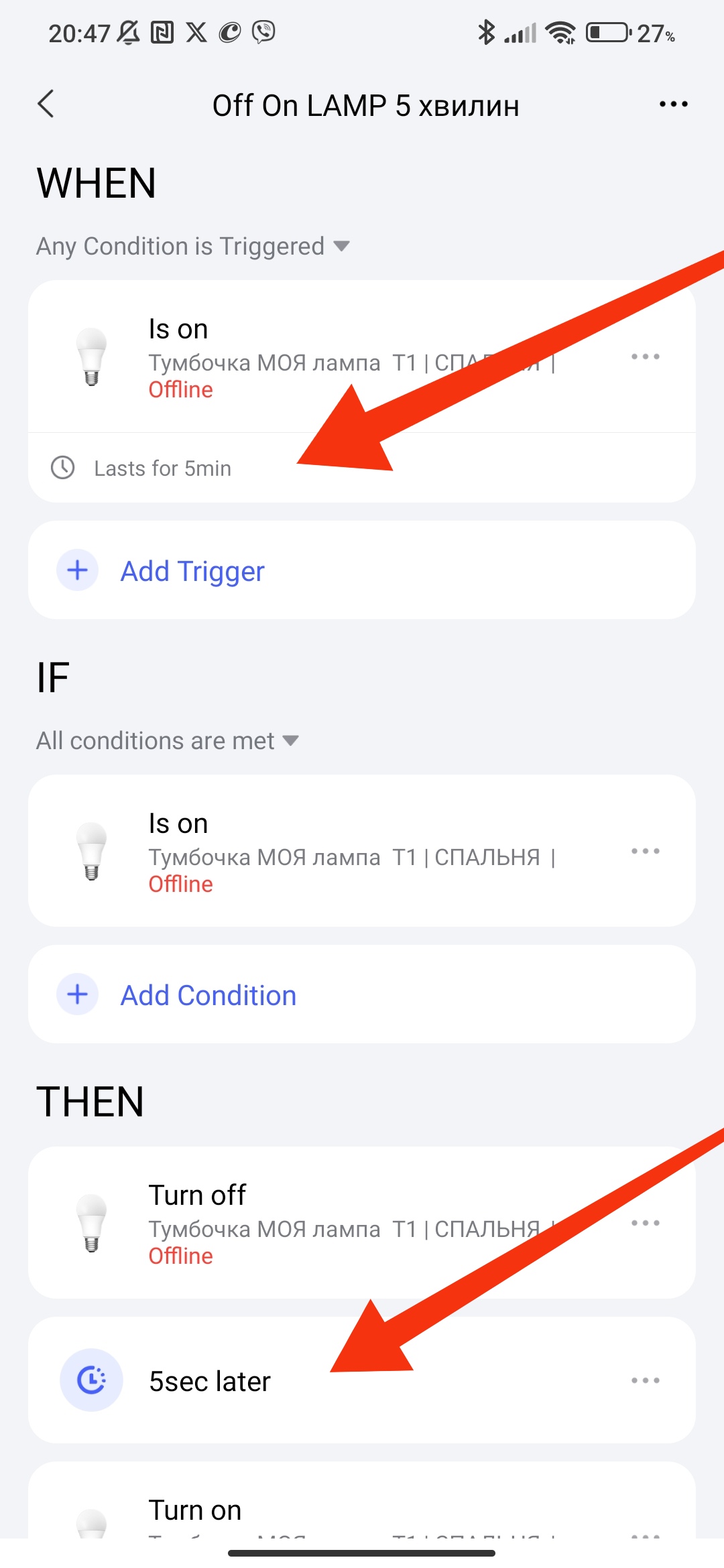 And this is a cyclical On/Off lamp automation with two variables with which we can choose the activation period. You can stop this automation only by turning off the automation. The work cycle is constant🤣