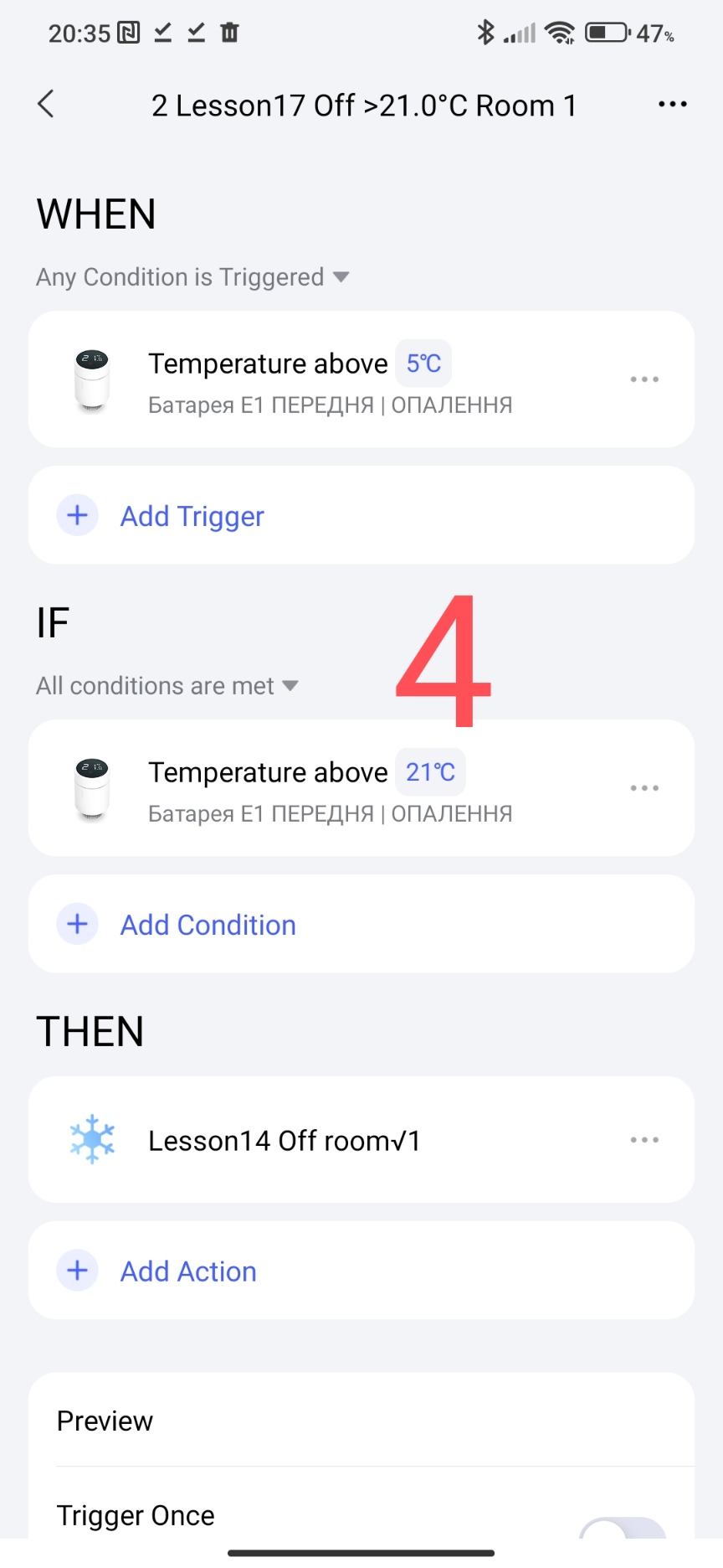 Lesson16 Automation 2.0, lesson 16, creating automations for combined room temperature control (AqaraTVR and thermal actuator) of an autonomous heating boiler
