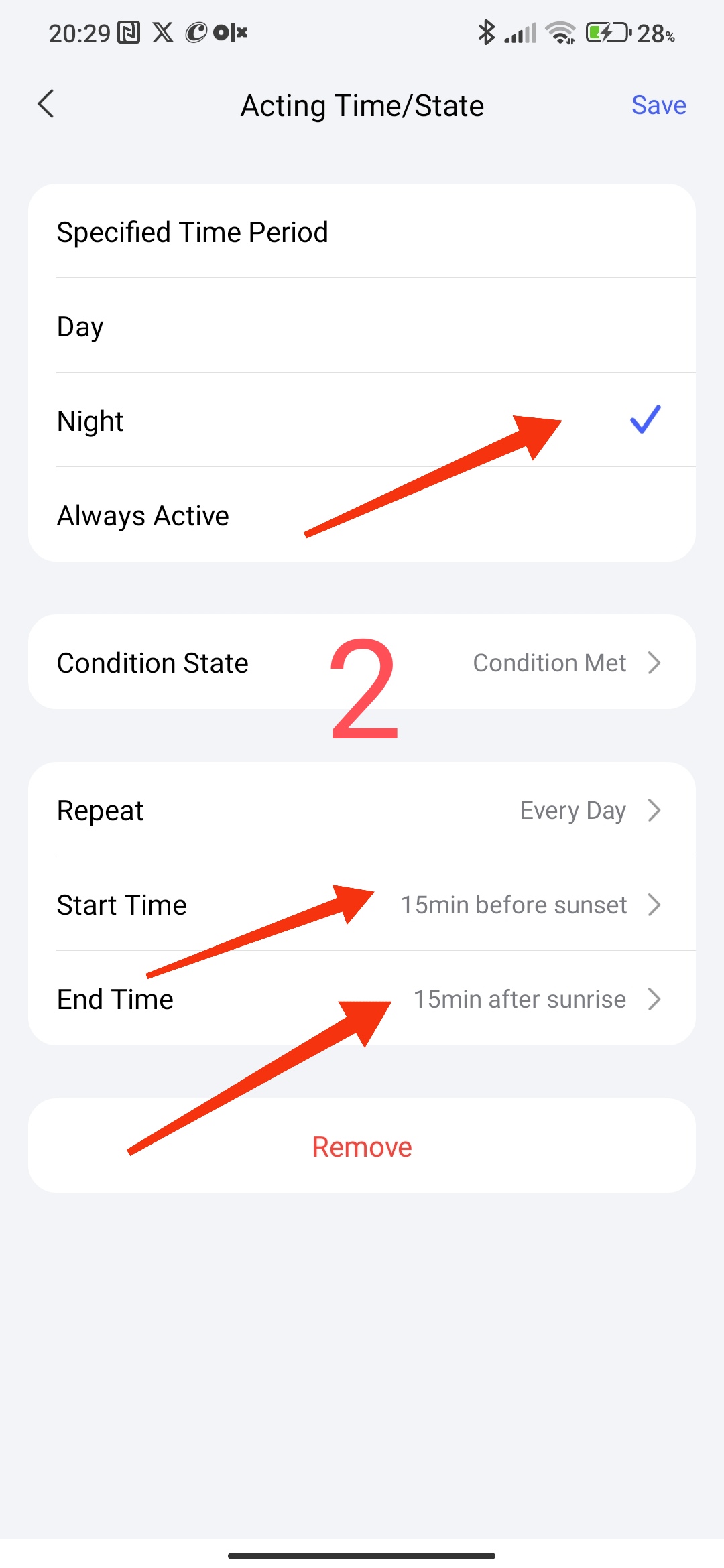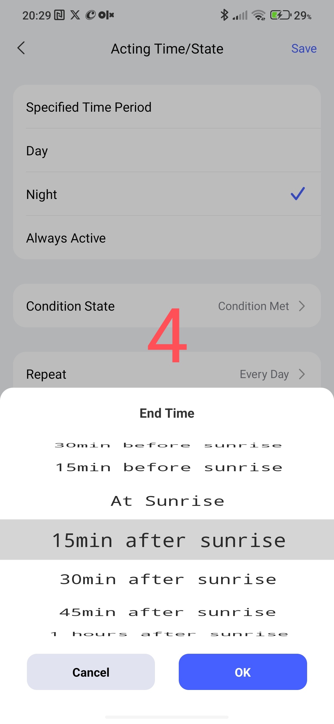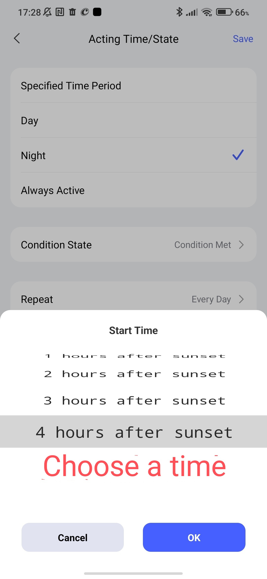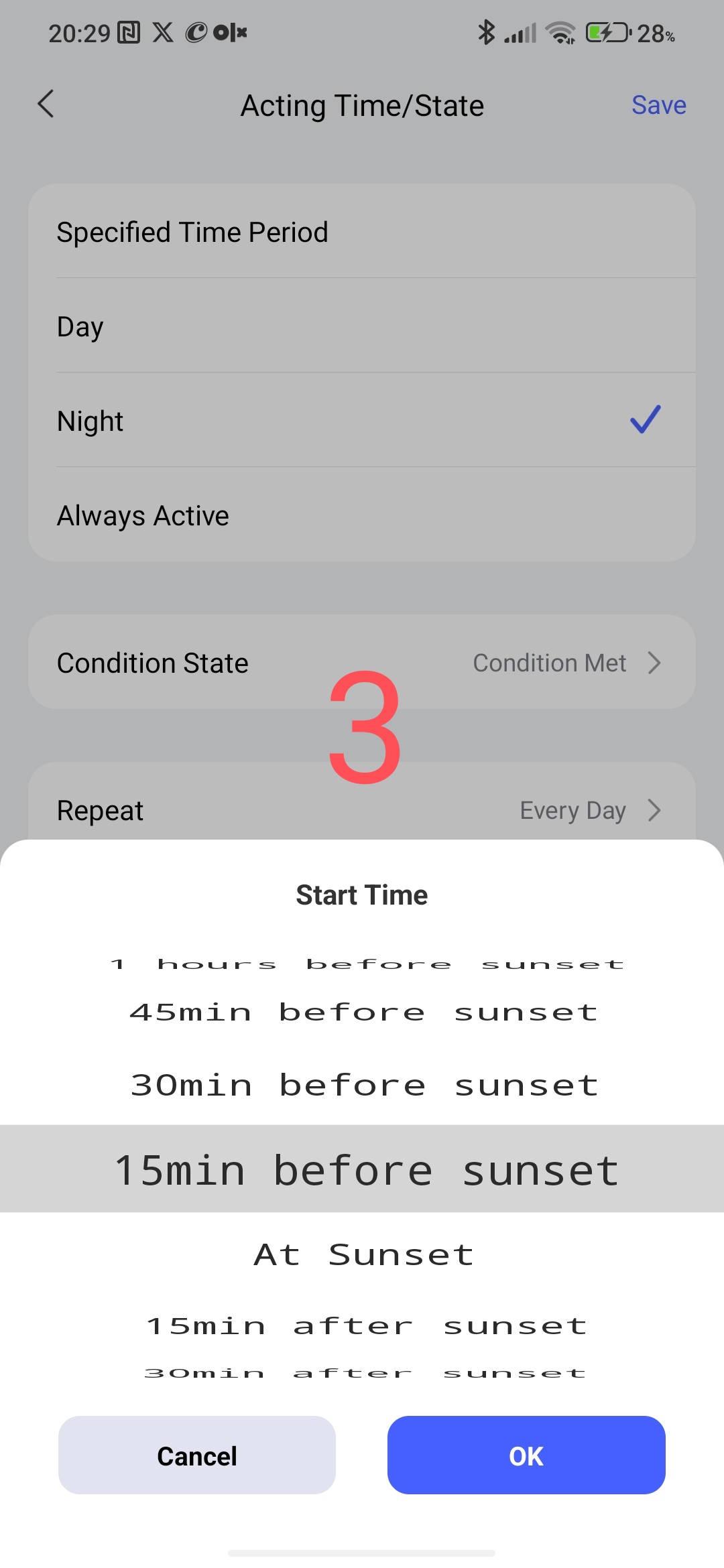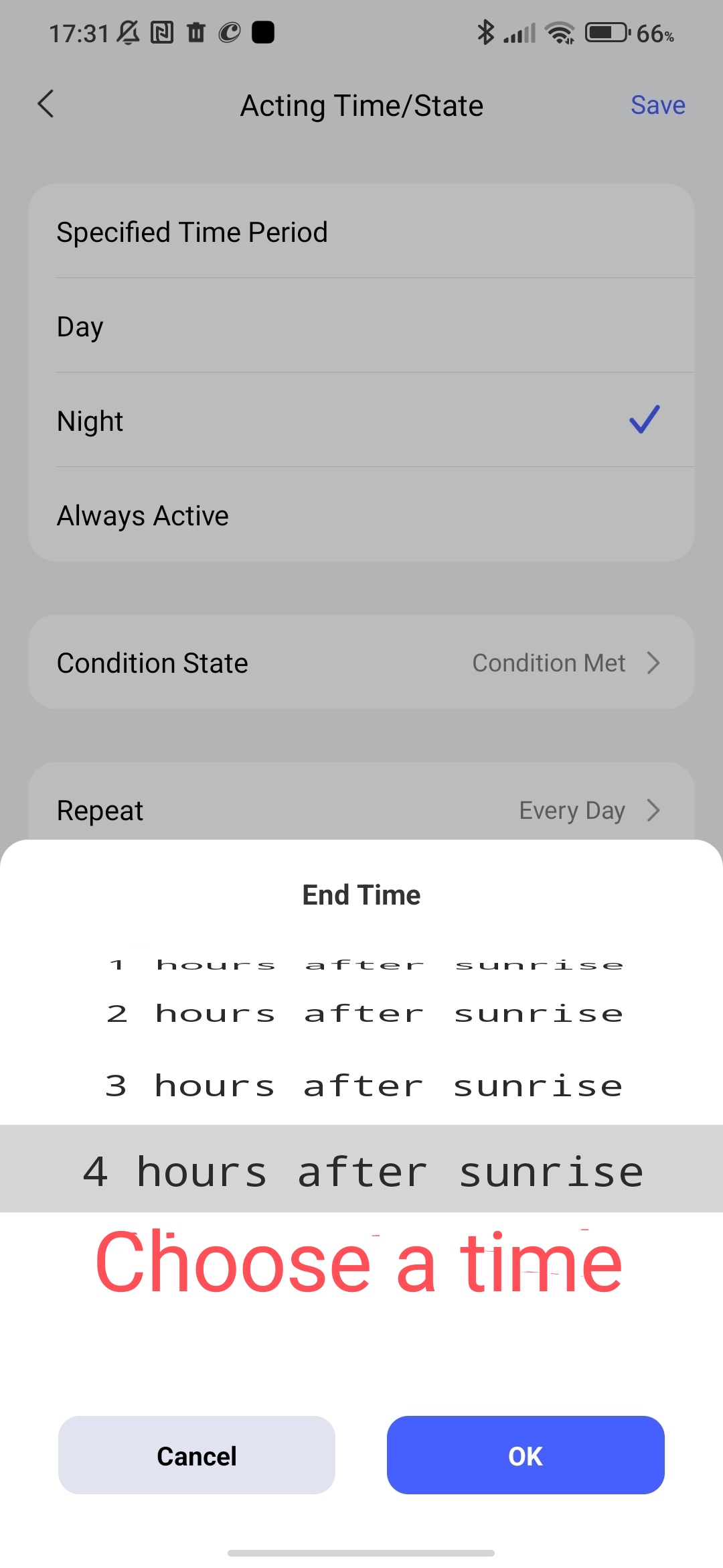 We select the “night” option, I practice choosing the start of the event 15 minutes before sunset and 15 minutes after sunrise. This selection is optimal for my region.