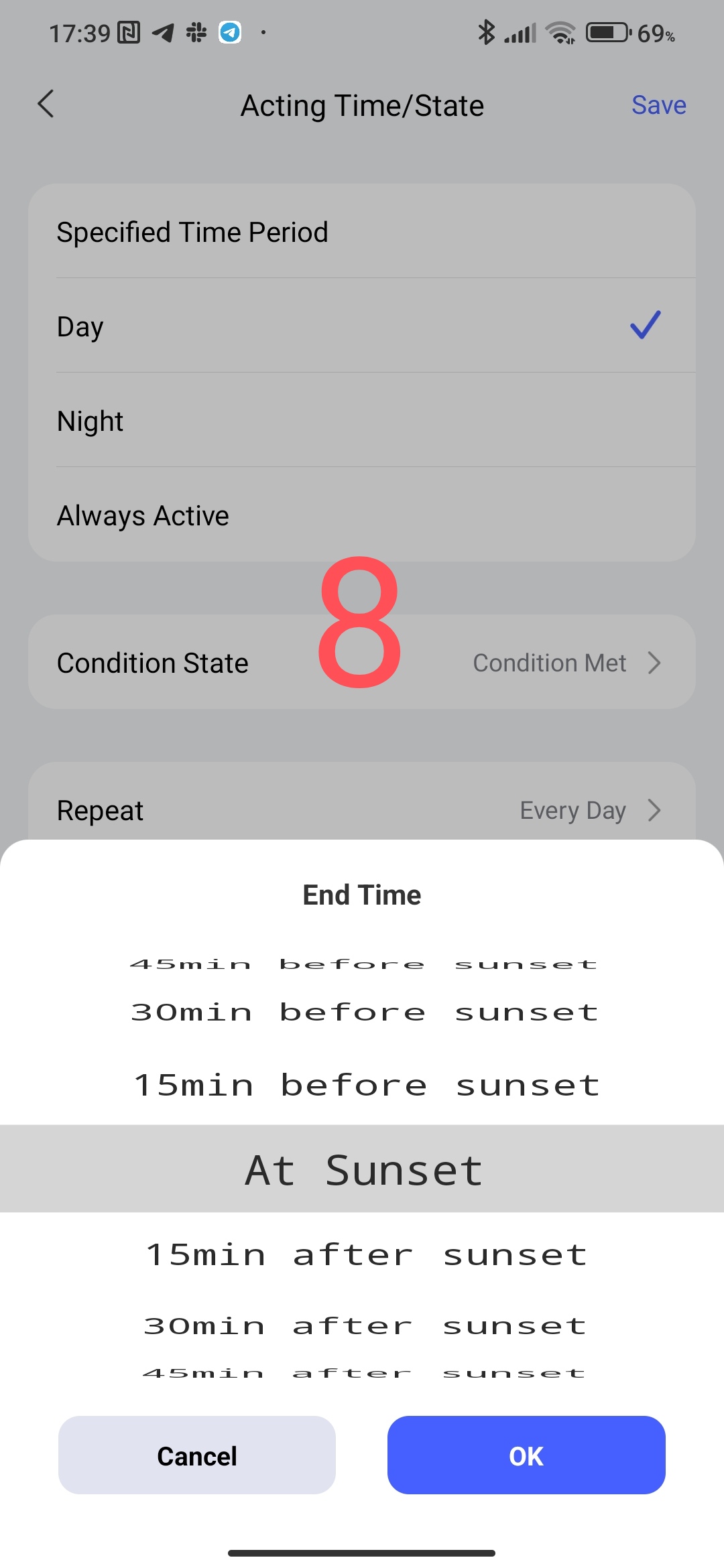 Another parameter “Cancel NOT Met” which changes the specified state of the condition to the opposite, I call this parameter “reverse” for myself. Example - I set the parameter sun (weather), after using reverse the weather will change to cloudy, or the switch on will turn into a switch off (note, the name “on” does not change, as well as “sun”, there is just a record with the condition (19) ).