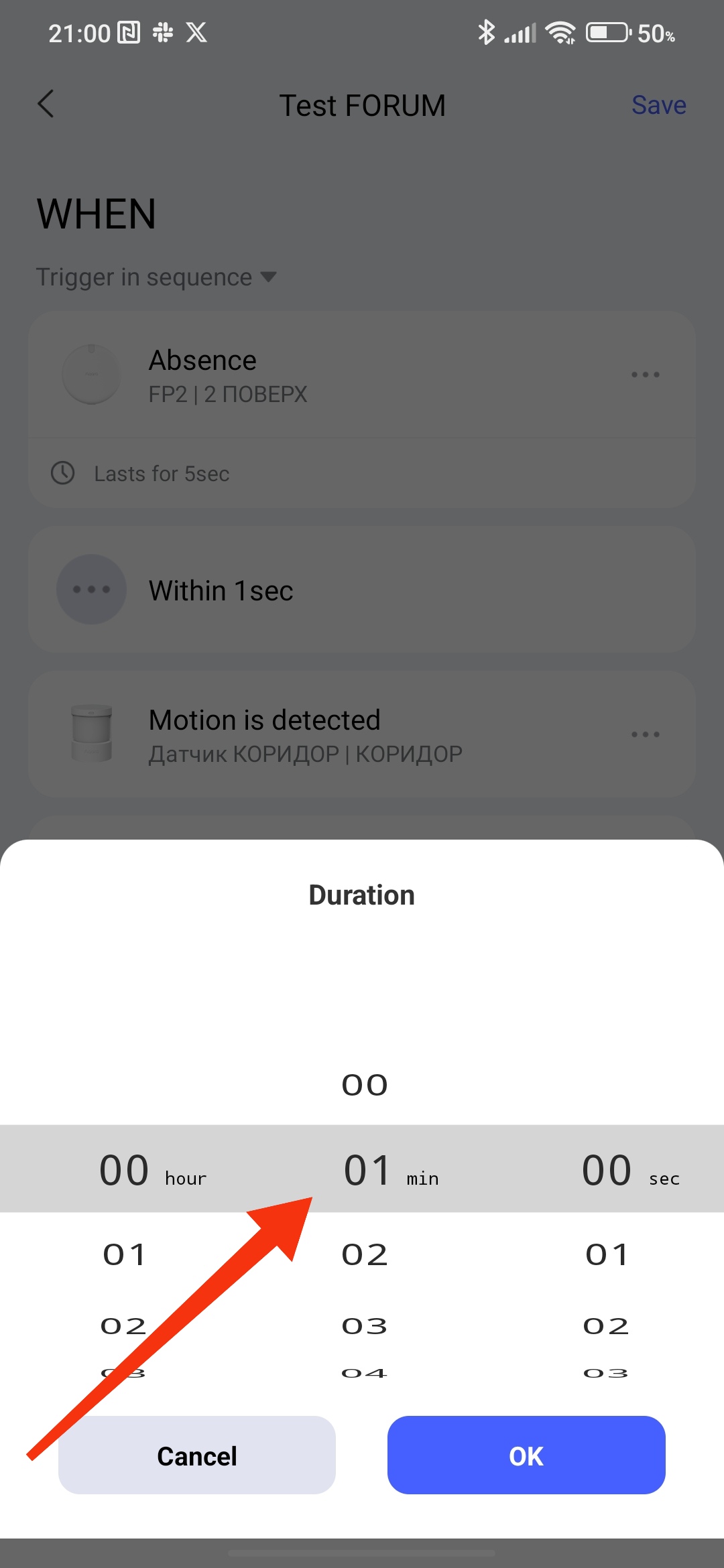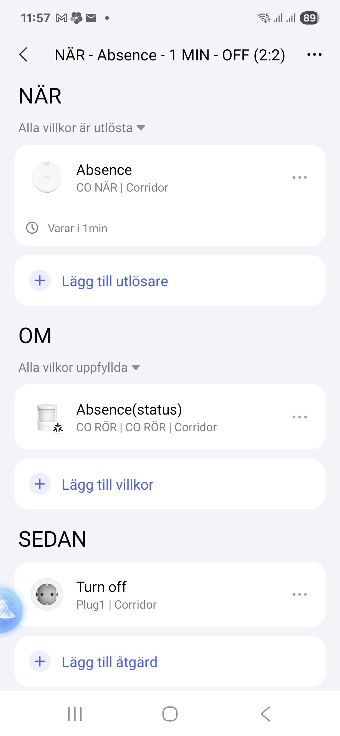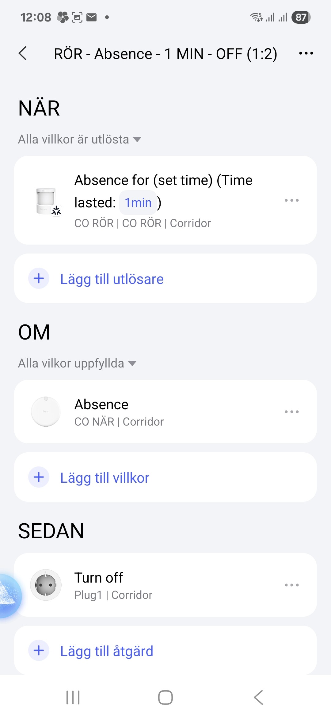 I want the lights to turn off after 1 min of no presence and motion detection.