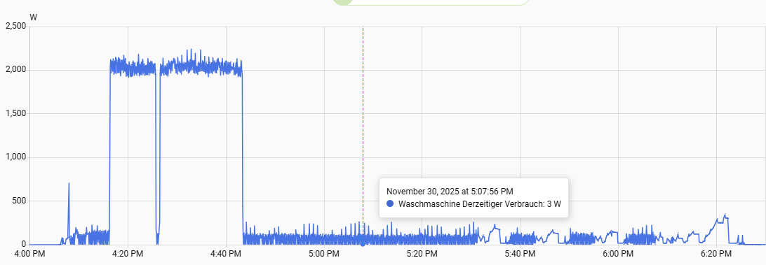 On my washing machine, the wattage value often drops briefly below 10 watts (see image).