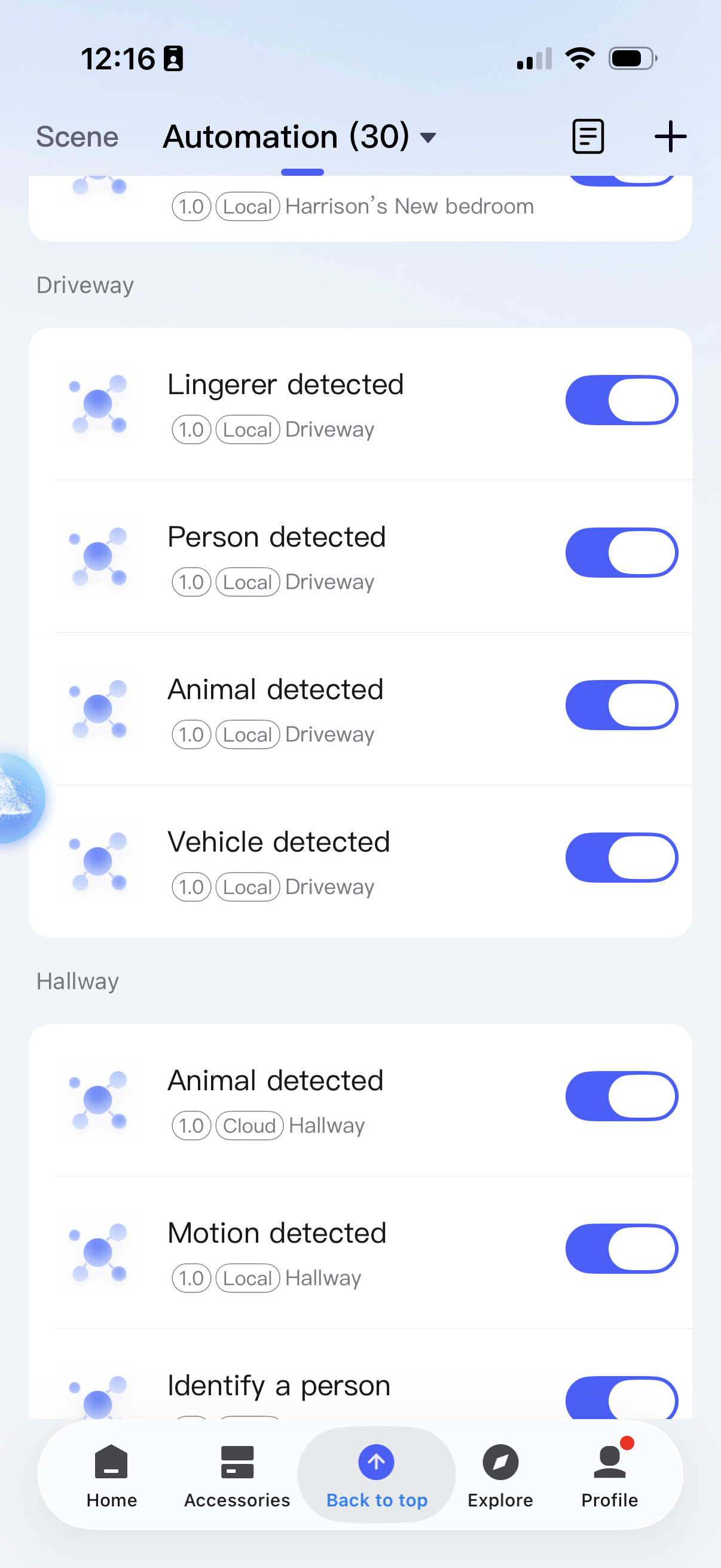Hello, all the automations you listed (in my opinion) should be CLOUD. Think for yourself, in order to send you a message from the camera when you are outside the house (walking somewhere or working at work), the gateway should go online and send you a notification. All automations that leave the house (using the Internet) are automatically CLOUD.