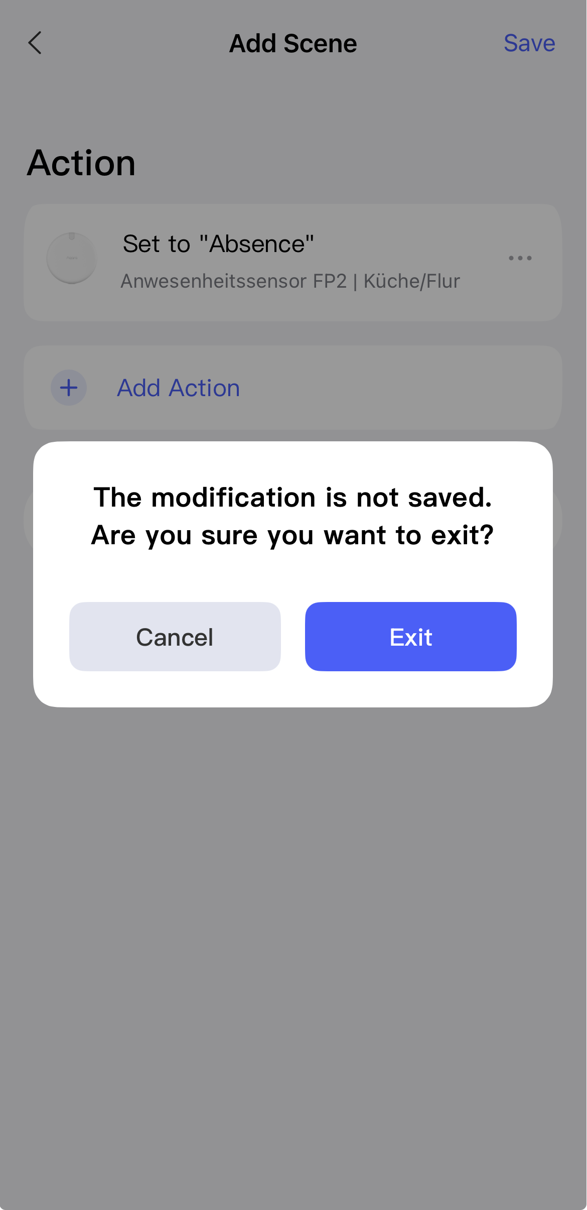 Therefore, the only way to exit is to add an action, save the automation, and then delete it!