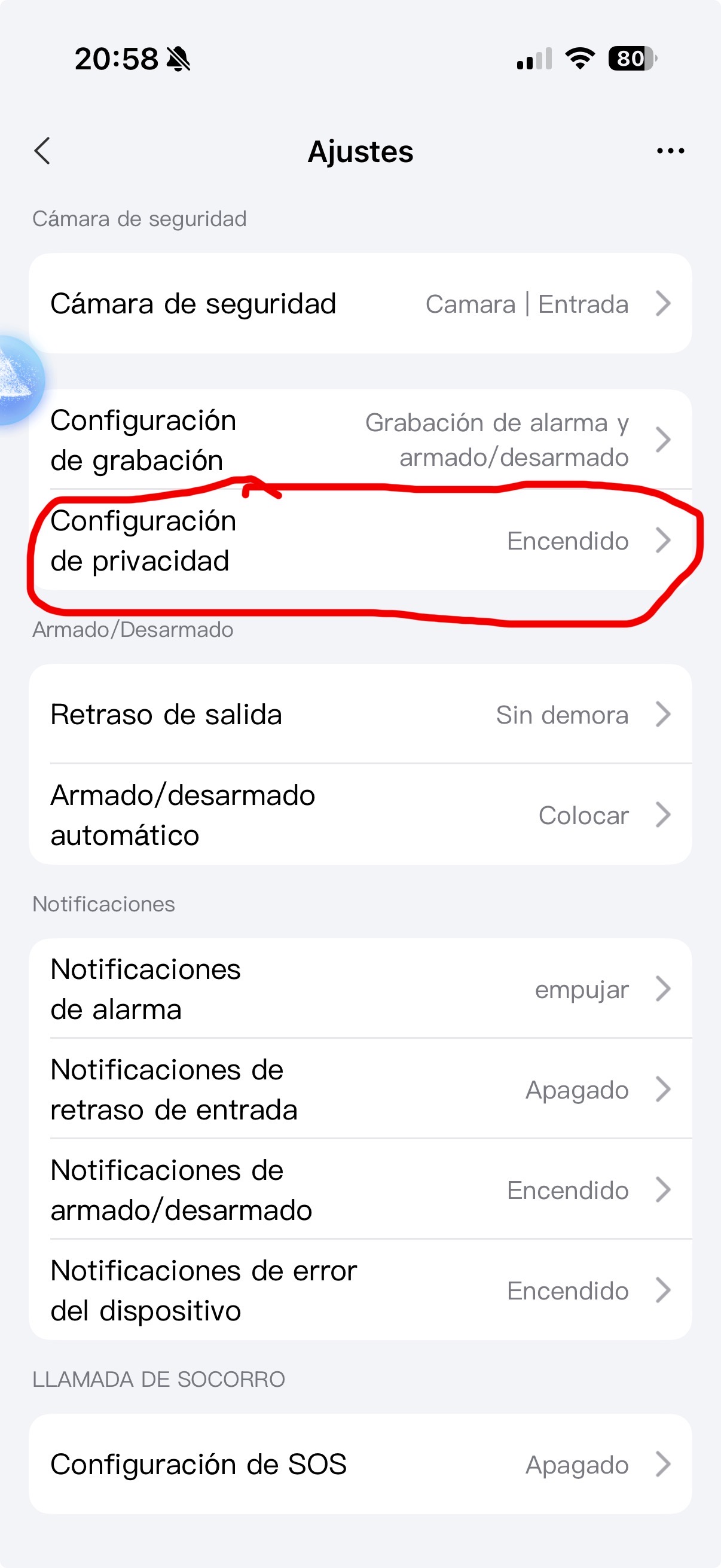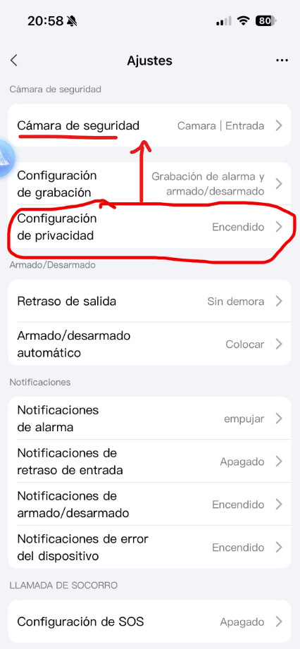 Esa configuración se aplica a todas las cámaras que estén incluidas dentro del apartado “Cámara de seguridad”.