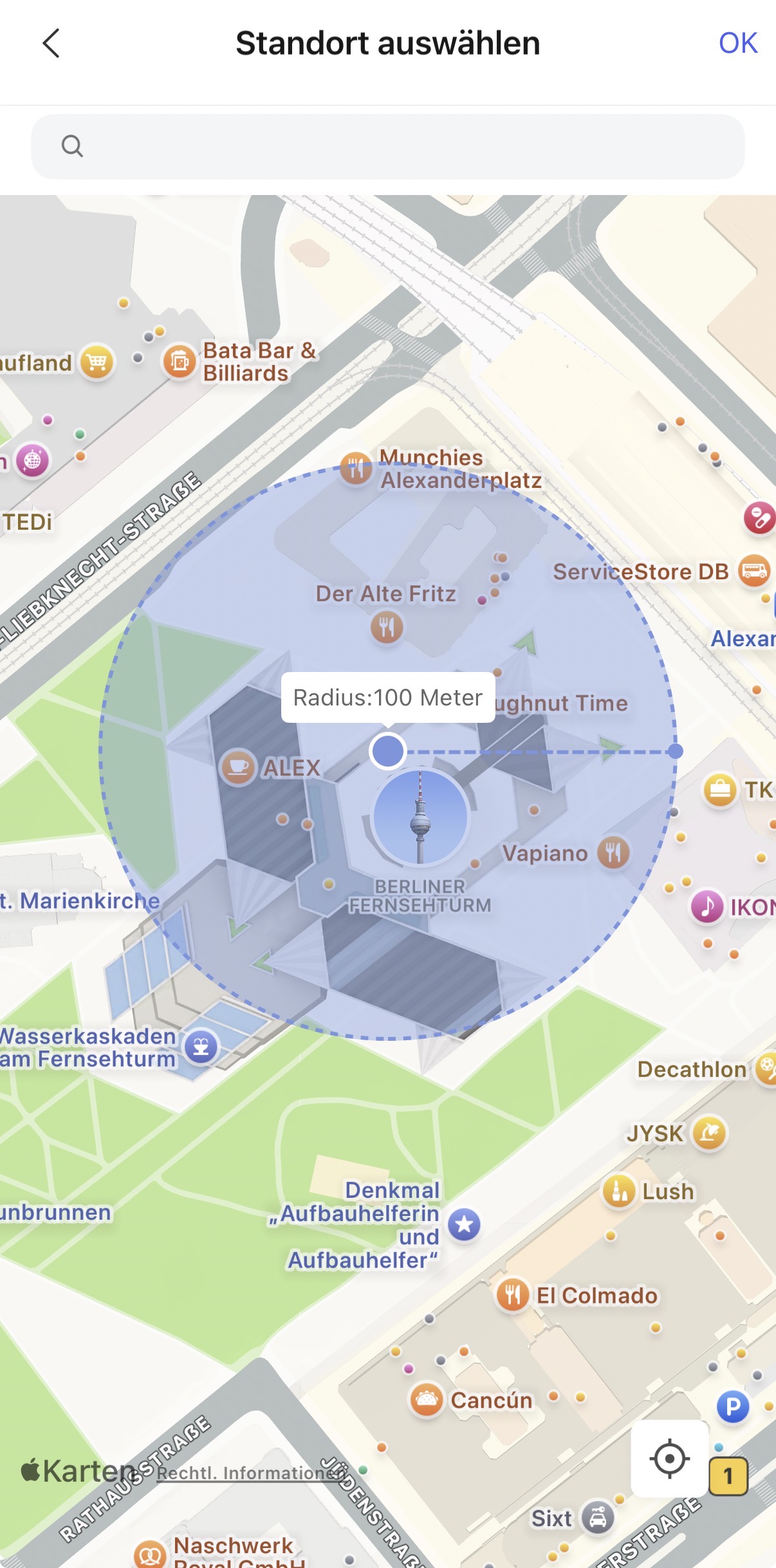 You have to tap on that location button and set your location with an home zone radius. Minimum is about 100 m. If you have chosen your location here and saved it, it will show you which device and user has set it, because I have multiple users in my home and the app is installed on multiple devices.