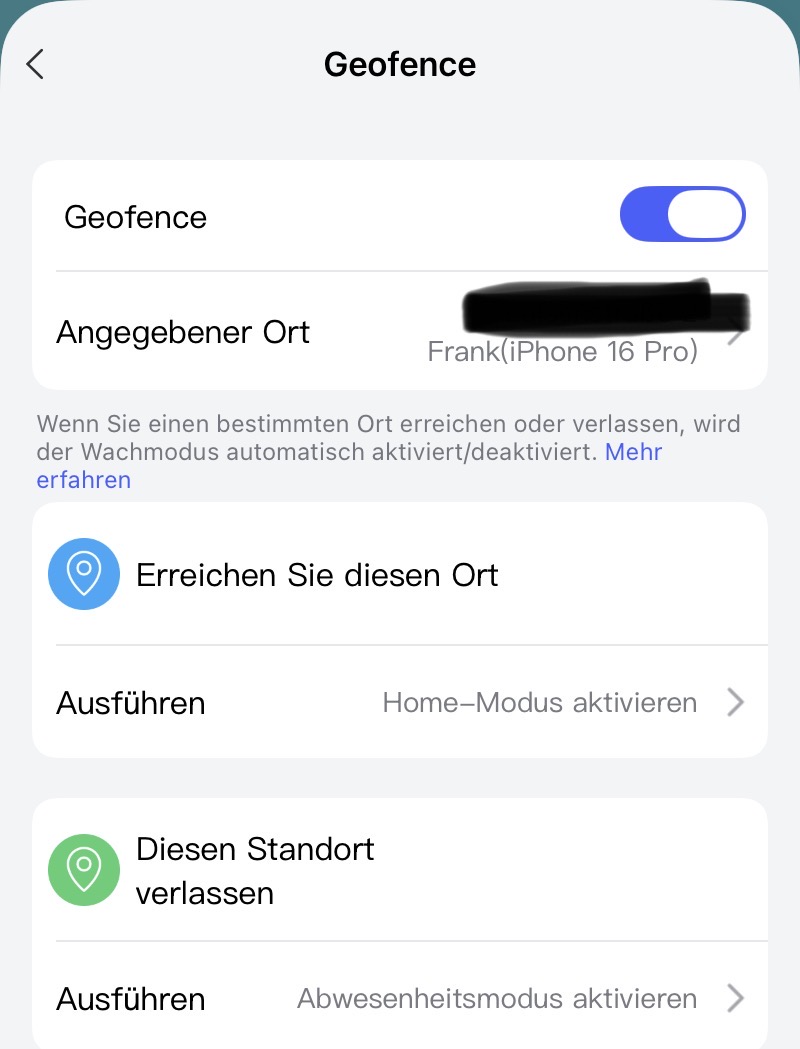 Furthermore I use the Geofence setting in the Aqara app for setting the security mode which triggers to arm the cams in the corresponding mode via privacy settings.