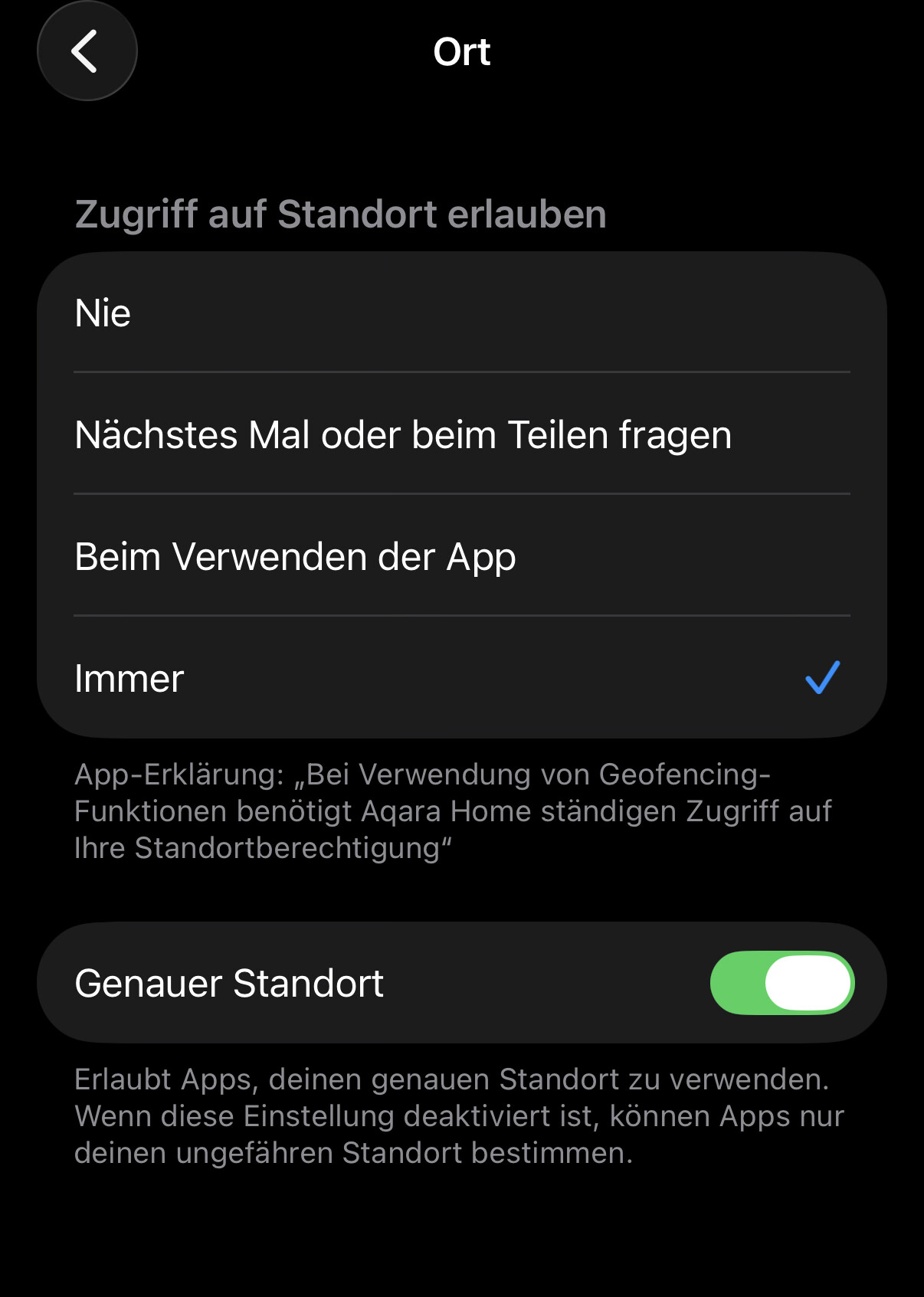 Have you allowed the Aqara Home app always access to your exact location and turned on background actualisation? This will be needed for proper working of the geofence feature.
