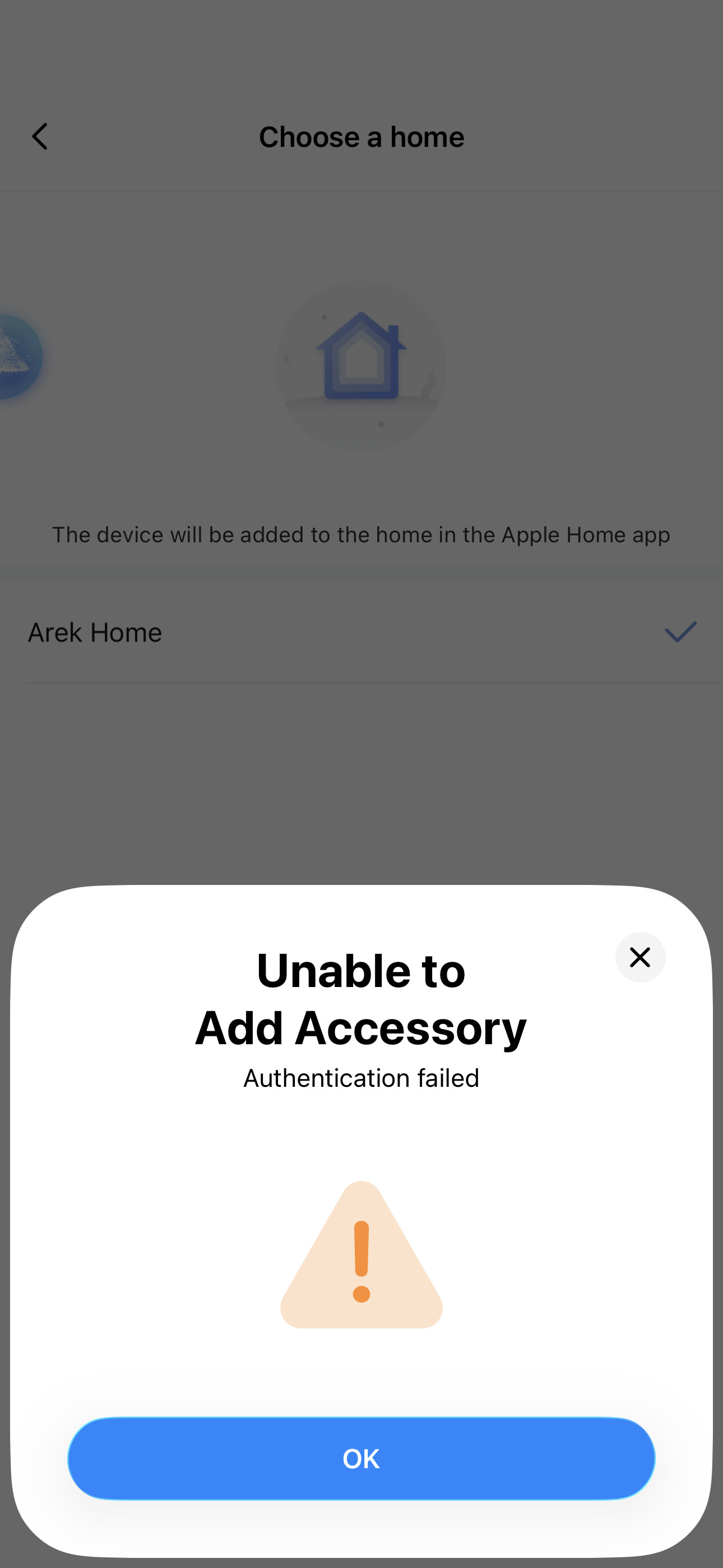 If you are using an iOS device, you might need to scan or enter the HomeKit code on the Apple Home app during this process." - here is where Apple shows “unable to add accessory, Authentication failed”. - check screenshots.