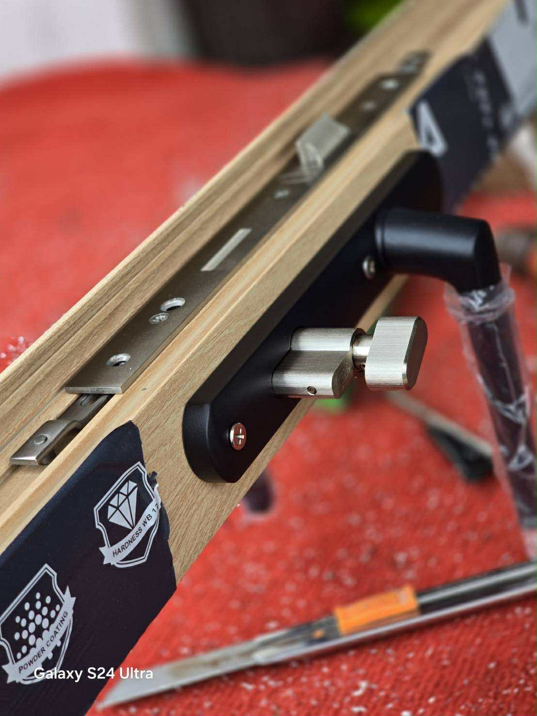 Model a cardboard box of this size according to the dimensions of the U200 that I made and lean it against the location of the lock. Be sure to consider and check whether the thickness of the lining (45 mm) does not touch your door frame when opening the door. In my homemade version, the opening gap is 2 mm ![]()