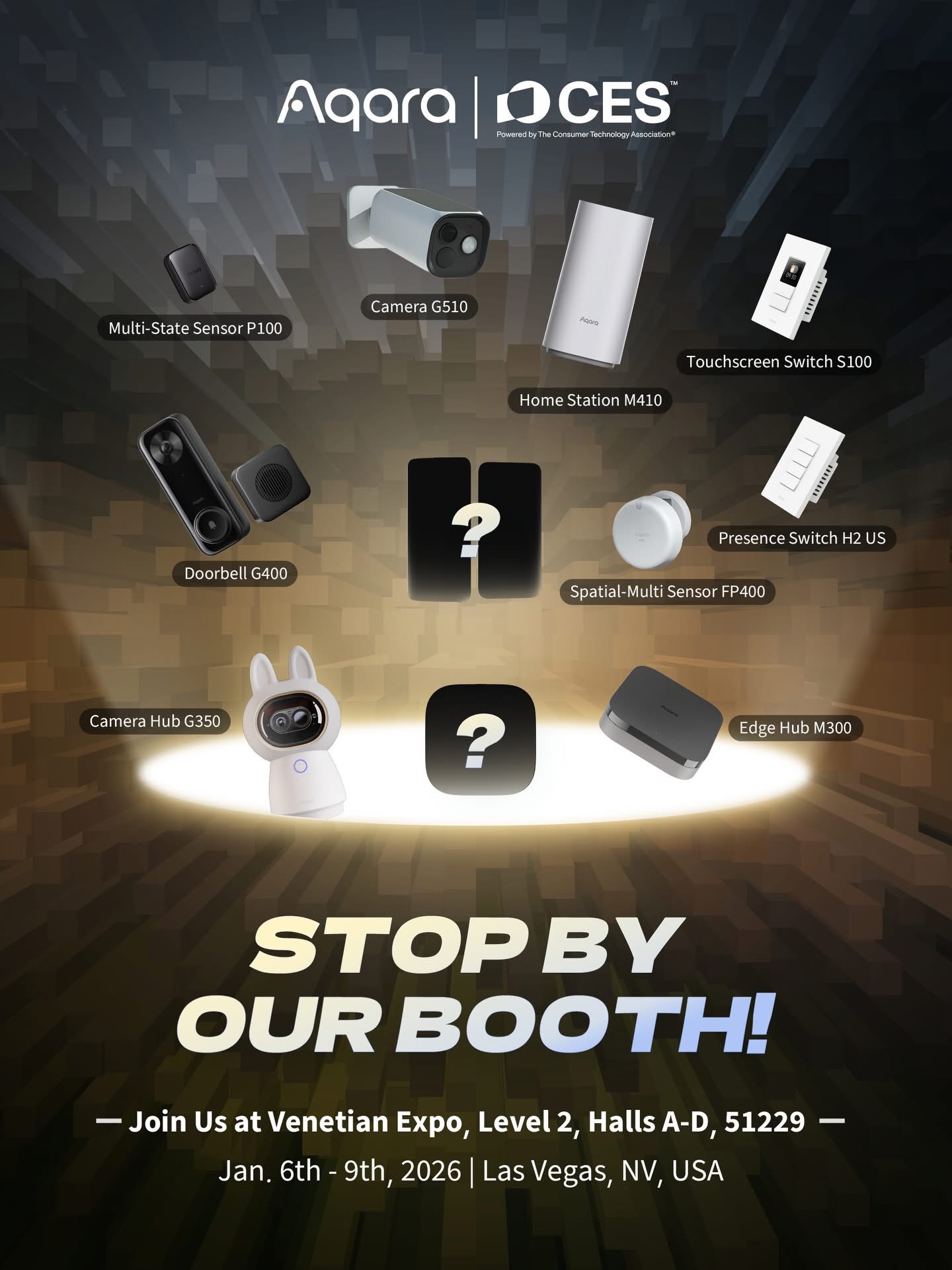 J’étais impatient de voir les présentations d’Aqara à la CES 2026 avec cette affiche.