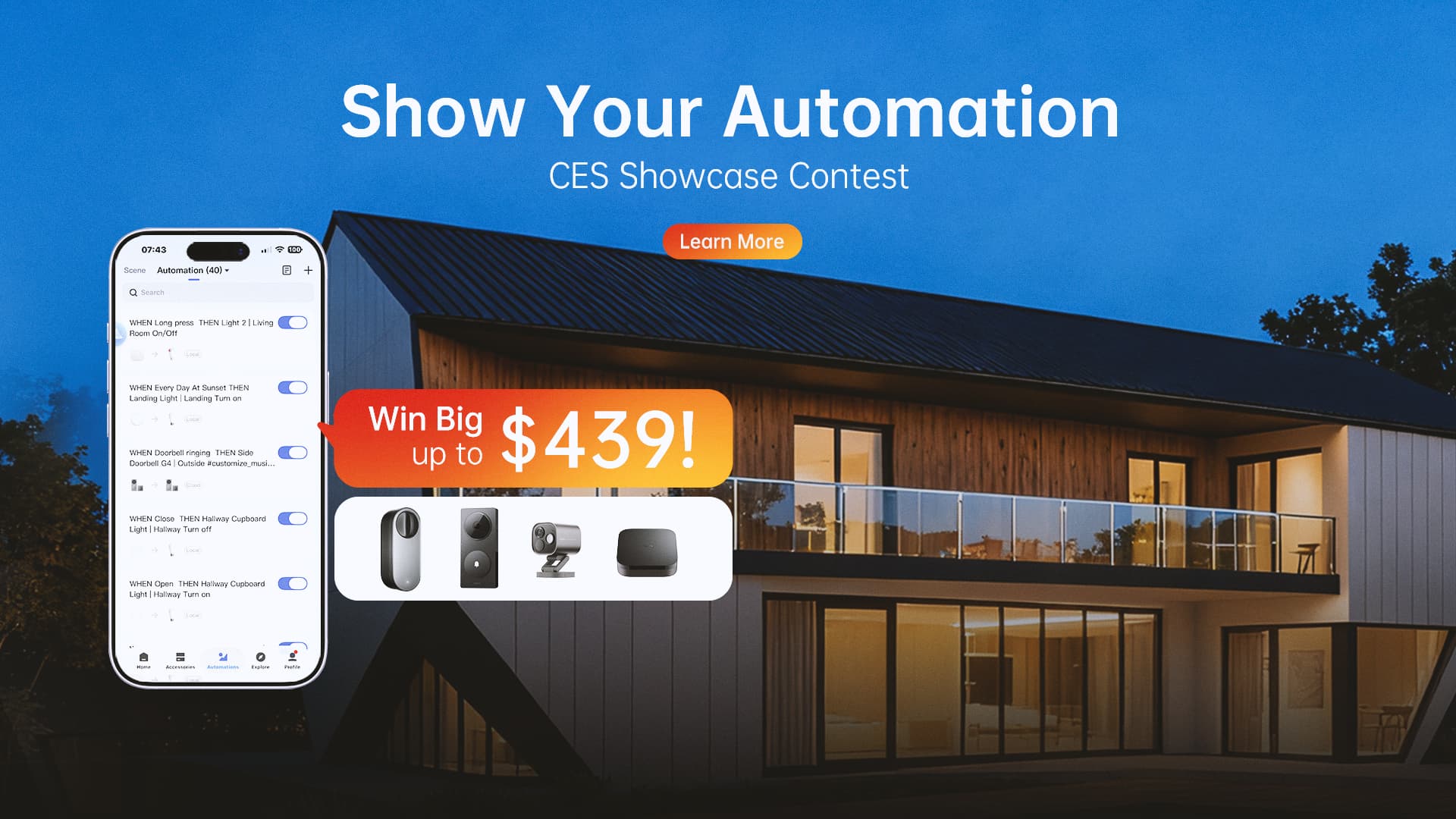 Showcase your creativity and let the world see your smart home in action! Share your automation video for a chance to win amazing prizes and recognition at CES!