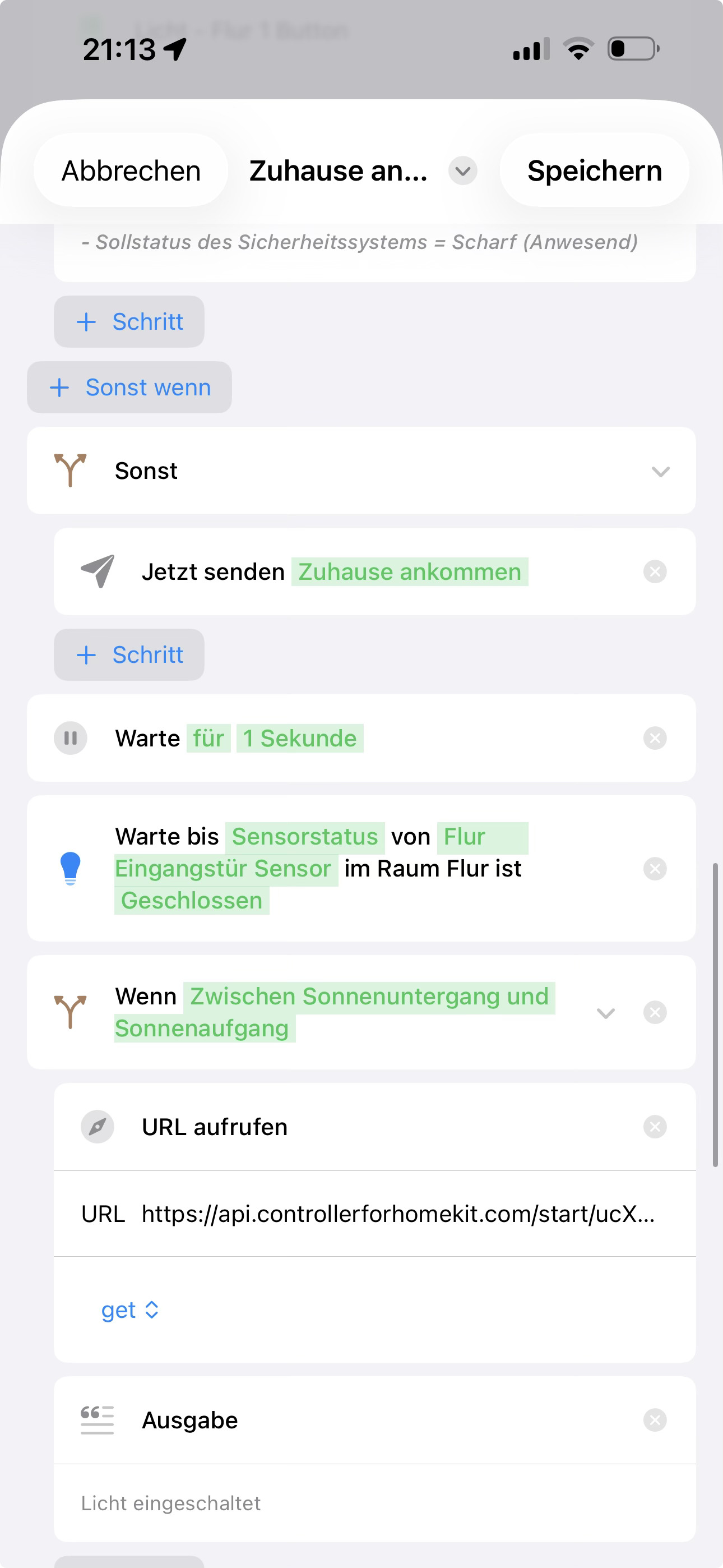 When I or my family come home, a HomeKit automation triggers a webhook and then the workflow runs and the door opens. That’s why the door unfortunately doesn’t open when I just go into the garden or take out the garbage.