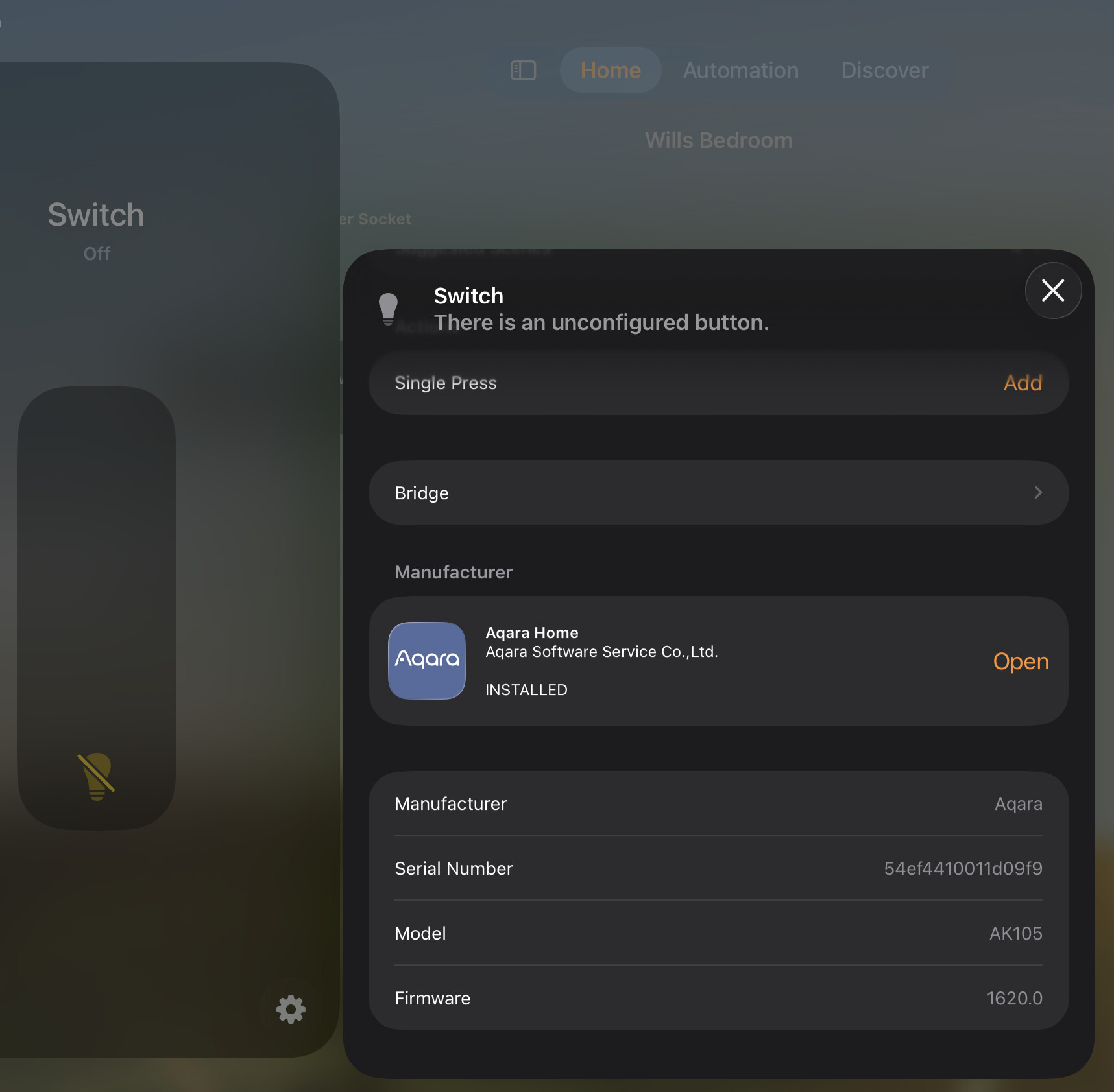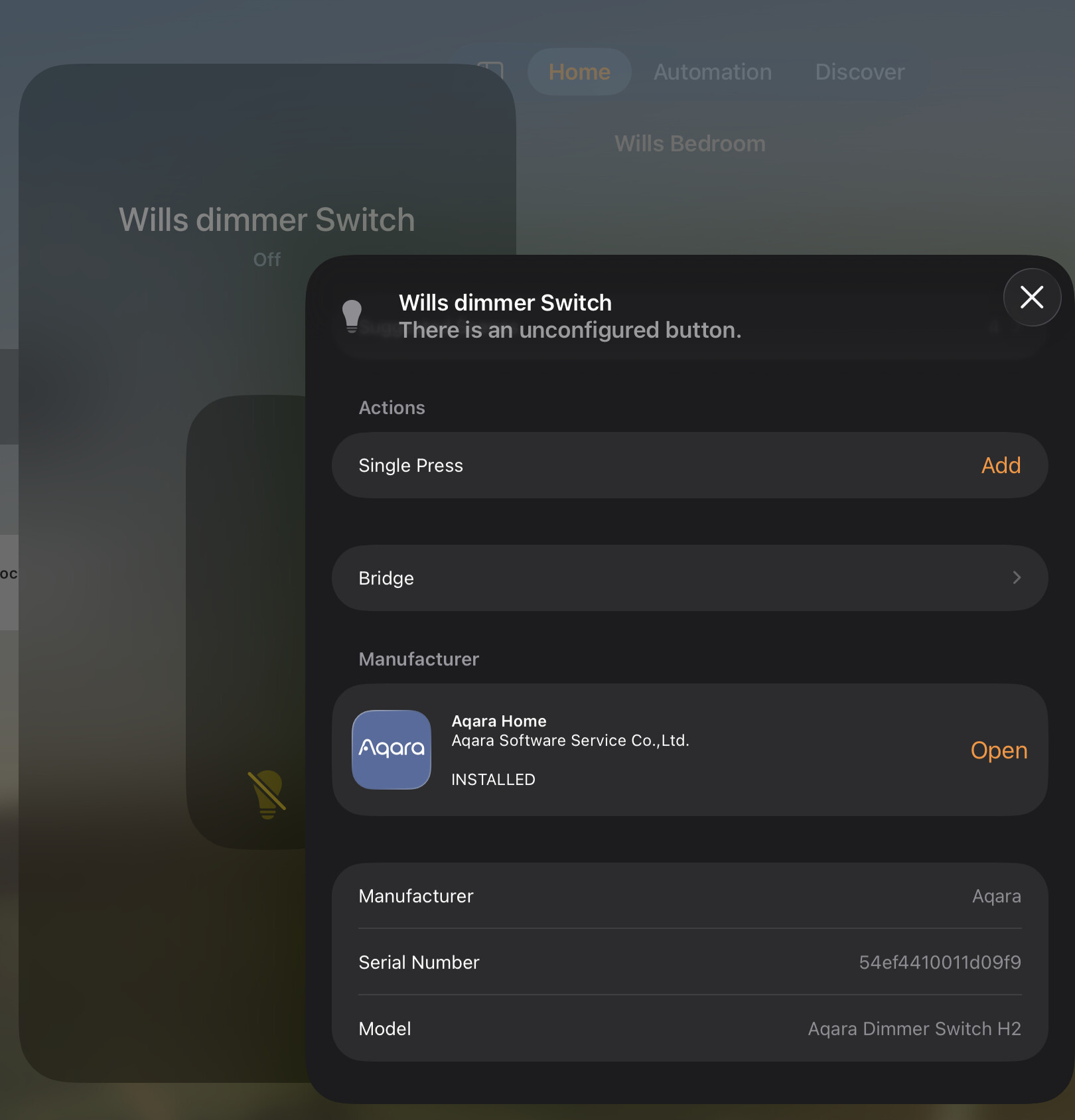 Aqara home displays this H2 EU device as 2 things - the Light bulb and a Wireless switch - inspecting either of them shows me the exact same page …