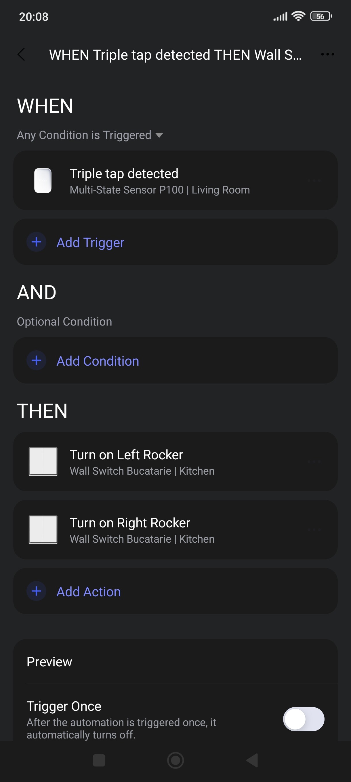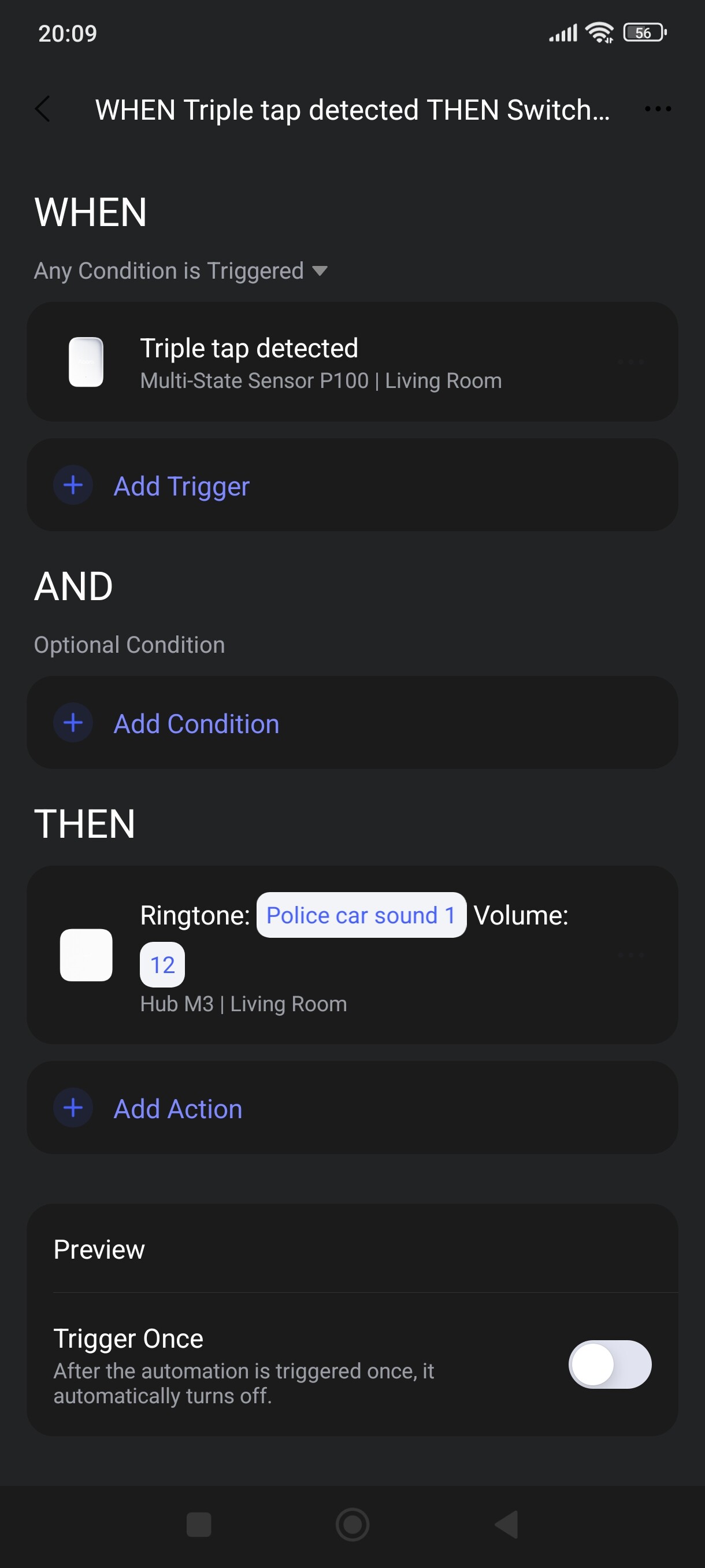 I wanted to test it on a simple automation with the triple tap option. But I see that it doesn’t work. Nothing happens.