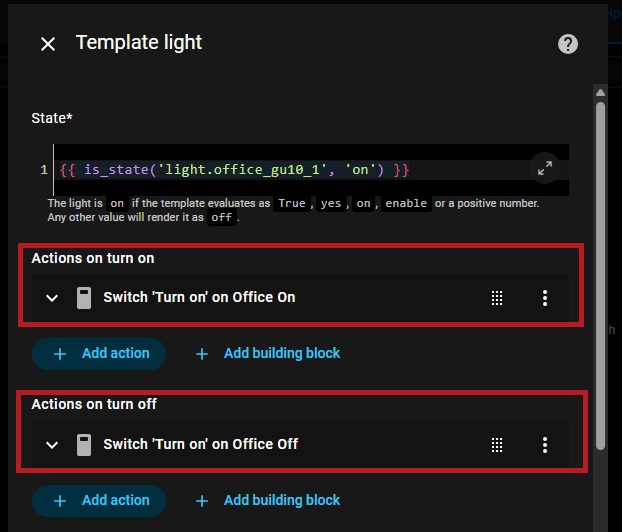 - State Template: Pick one of the real bulbs from the group to determine the light’s on/off state. This returns