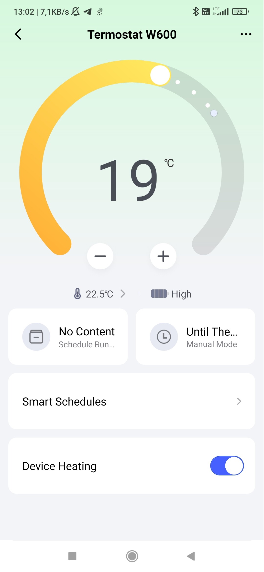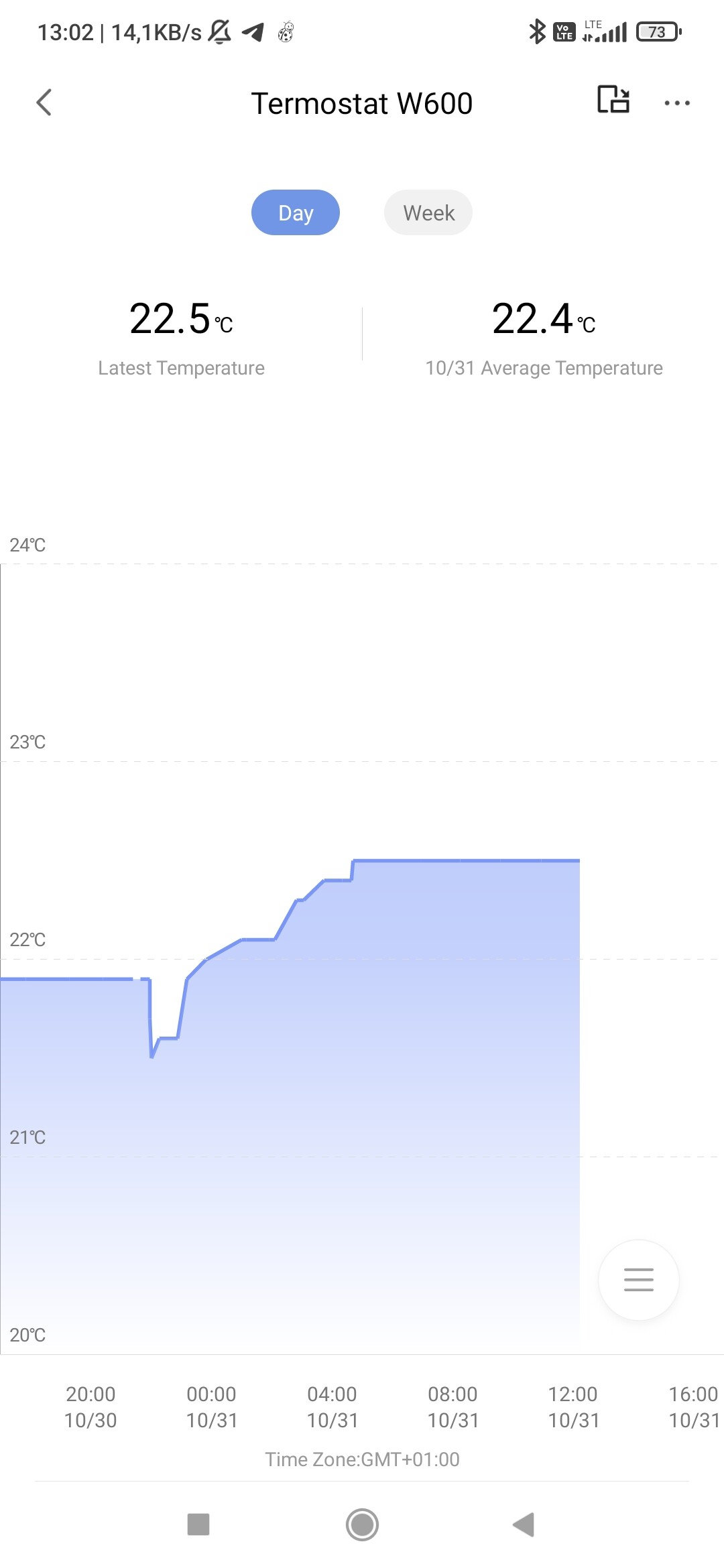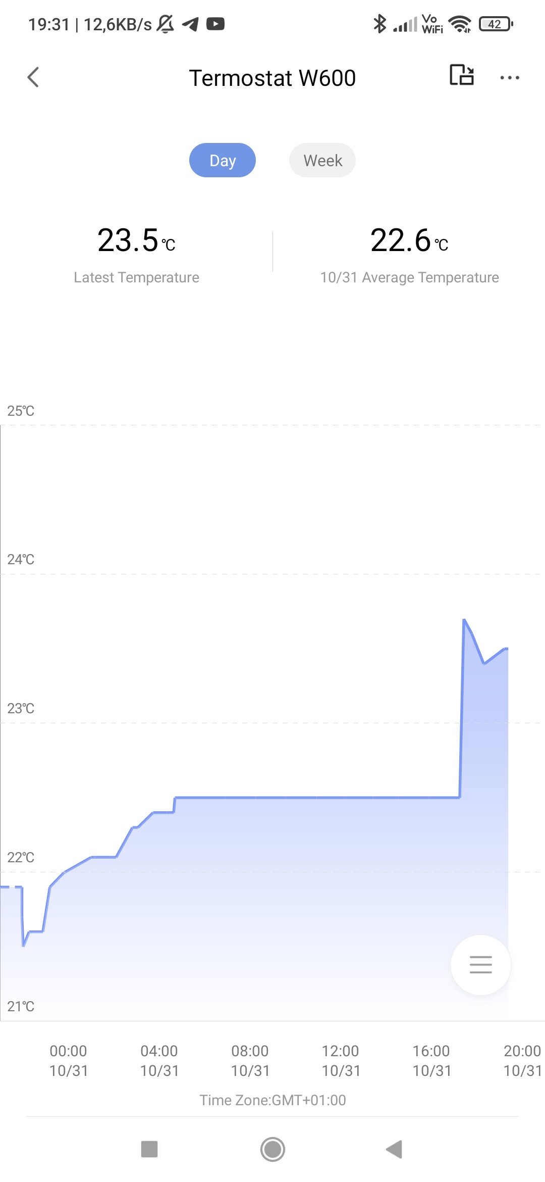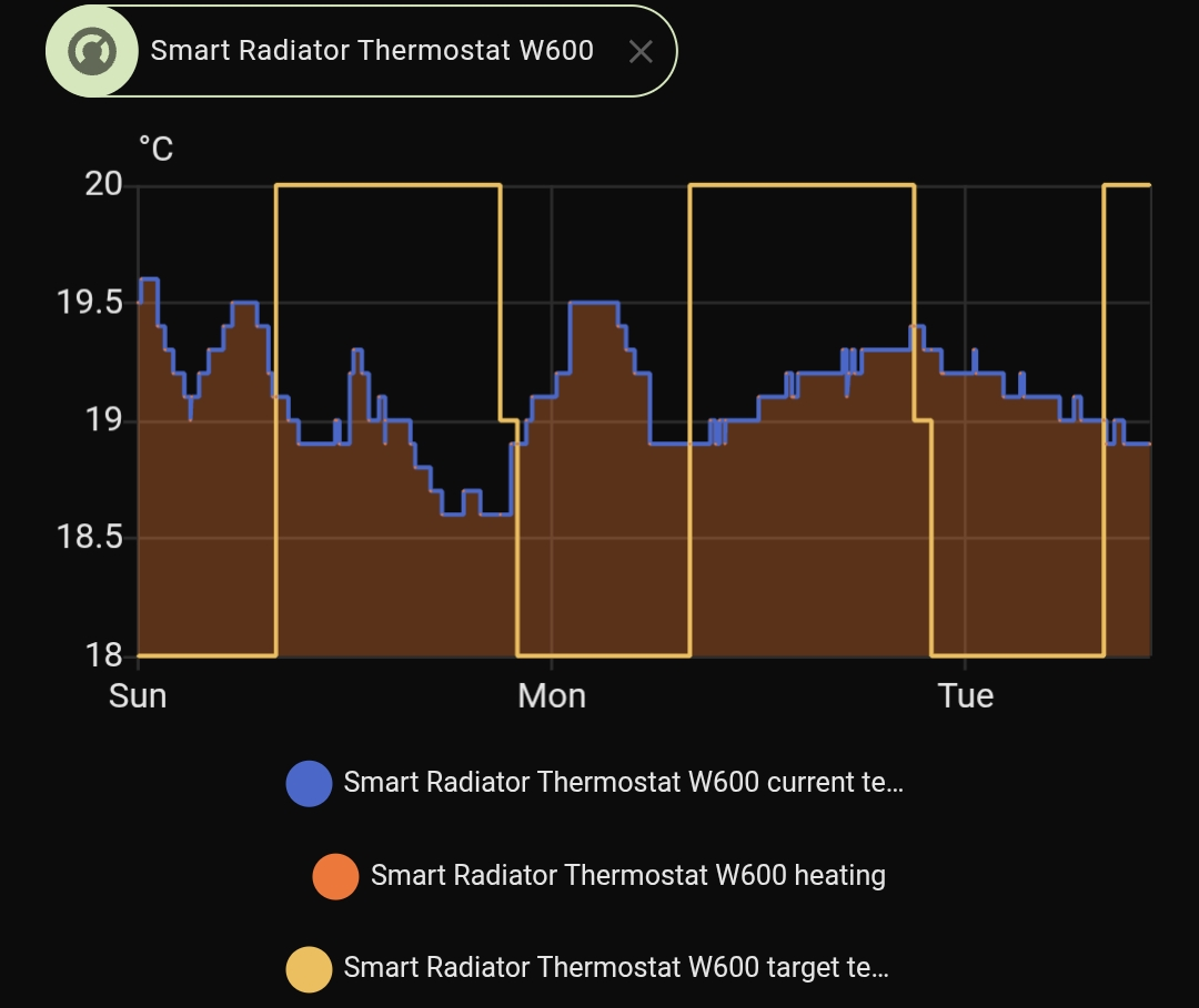 Hi, did anyone manage to get the smart schedule working on the W600? After a restart I set three scenes (Day 20°C, Quiet 19°C, Sleep 18°C). The setpoint appears to change according to the schedule, but the temperature hardly follows — after two days the room temperature stays between 18.6–19.5°C, and nights are consistently warmer than daytime. Logs show the setpoint is being sent on schedule, so it looks like the W600 is ignoring the settings. Any ideas or experiences getting the schedule to actually control room temperature?