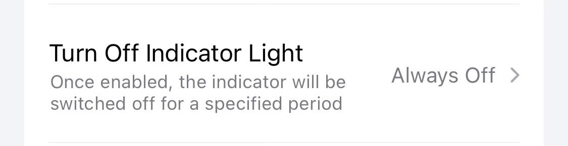 The ‘Turn off indicator lights’ settings are confusing. You enable the setting to turn off the lights at certain times. With that you would expect that if this setting is disabled, the indicator lights would always be on. And yet it shows as ‘always off’ when the switch is disabled. I would simplify it by saying if the switch is enabled, the indicator light will be on.