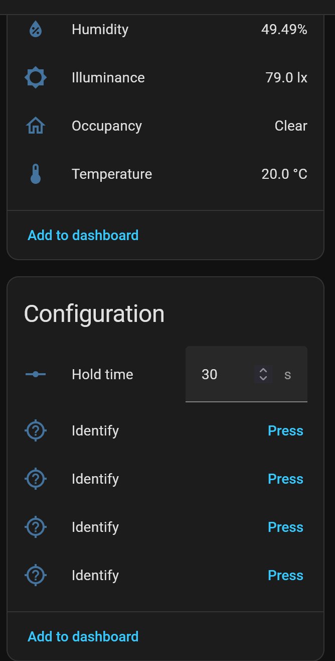 In Home Assistant, where my sensor is exposed over matter through the m3 hub), the motion sensor does not see t0 be exposed. I cannot create any automation based on motion. Instead, they seem to be identify configurations: