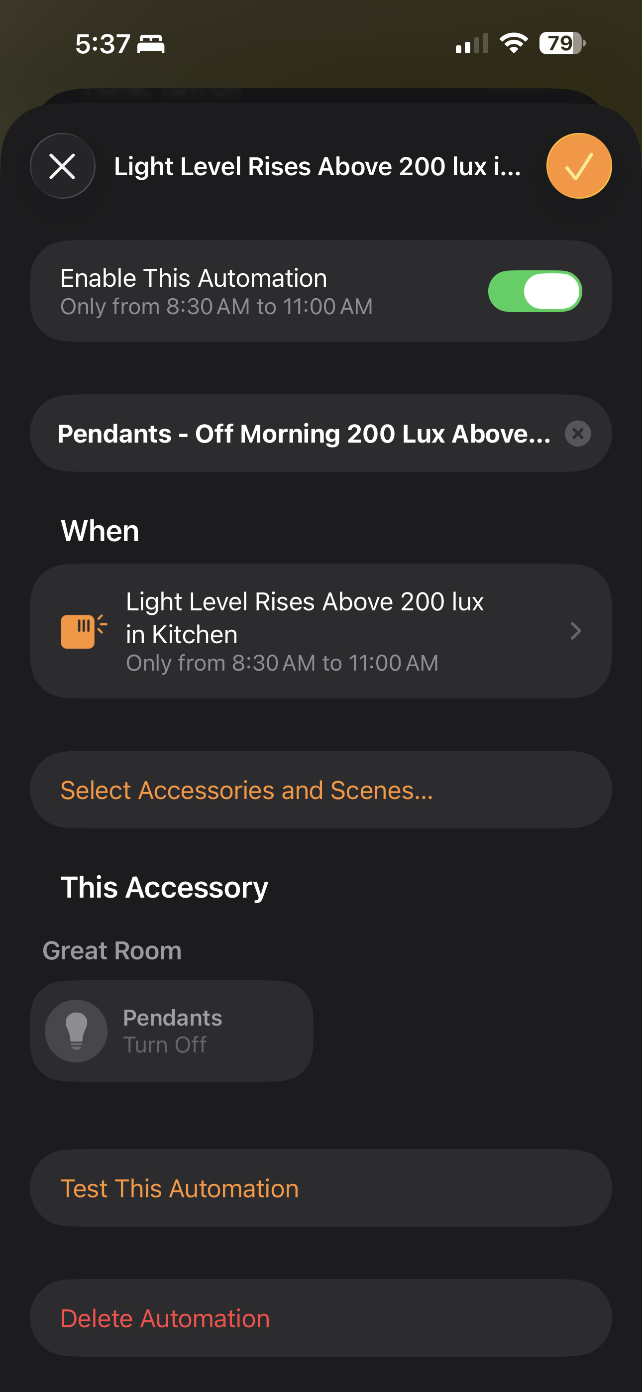 Looking at my own lux readings from the past month with the current weather, 200 lux was only exceeded on a few days in the afternoon. In my case, the automation wouldn’t have triggered on a single day.