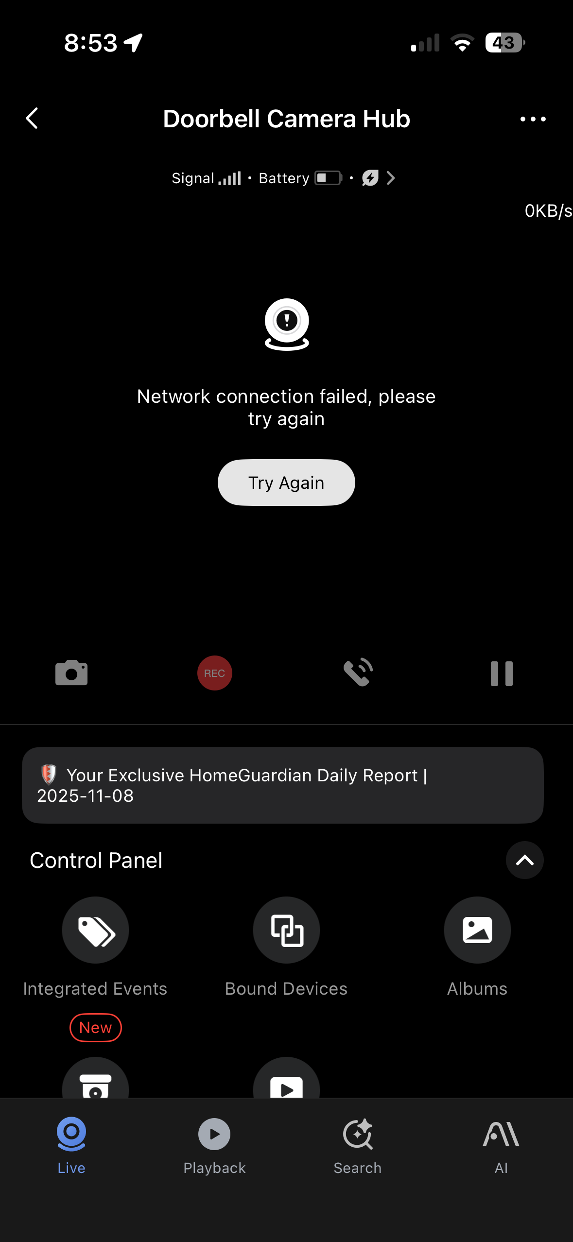 Hi, I’ve installed the G410 Doorbell a week ago, working fine until yesterday. The app keeps showing “Network connection failed, please try again” and the chime flashes red/green.