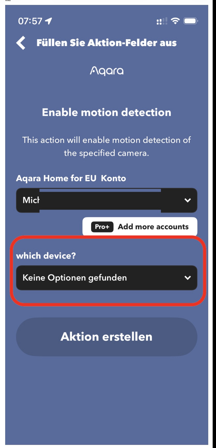 I also tried to set up another IFTTT account with the same mailadress as used in Aqara: NO DEVICE FOUND.