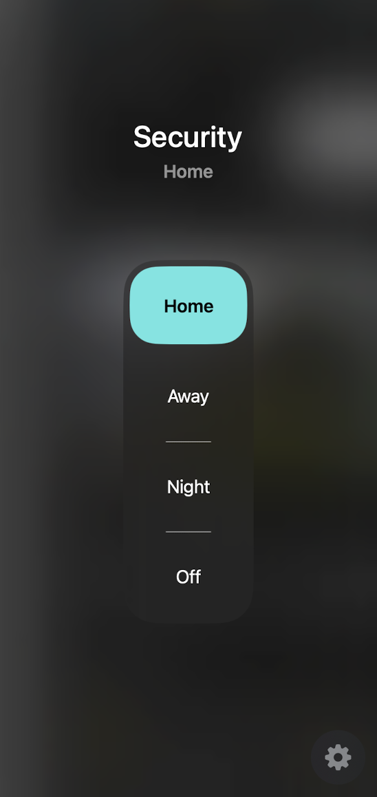 HomeKit only shows the modes – it can’t actually configure which sensors trigger alarms for “Home”, “Away”, or “Night”.