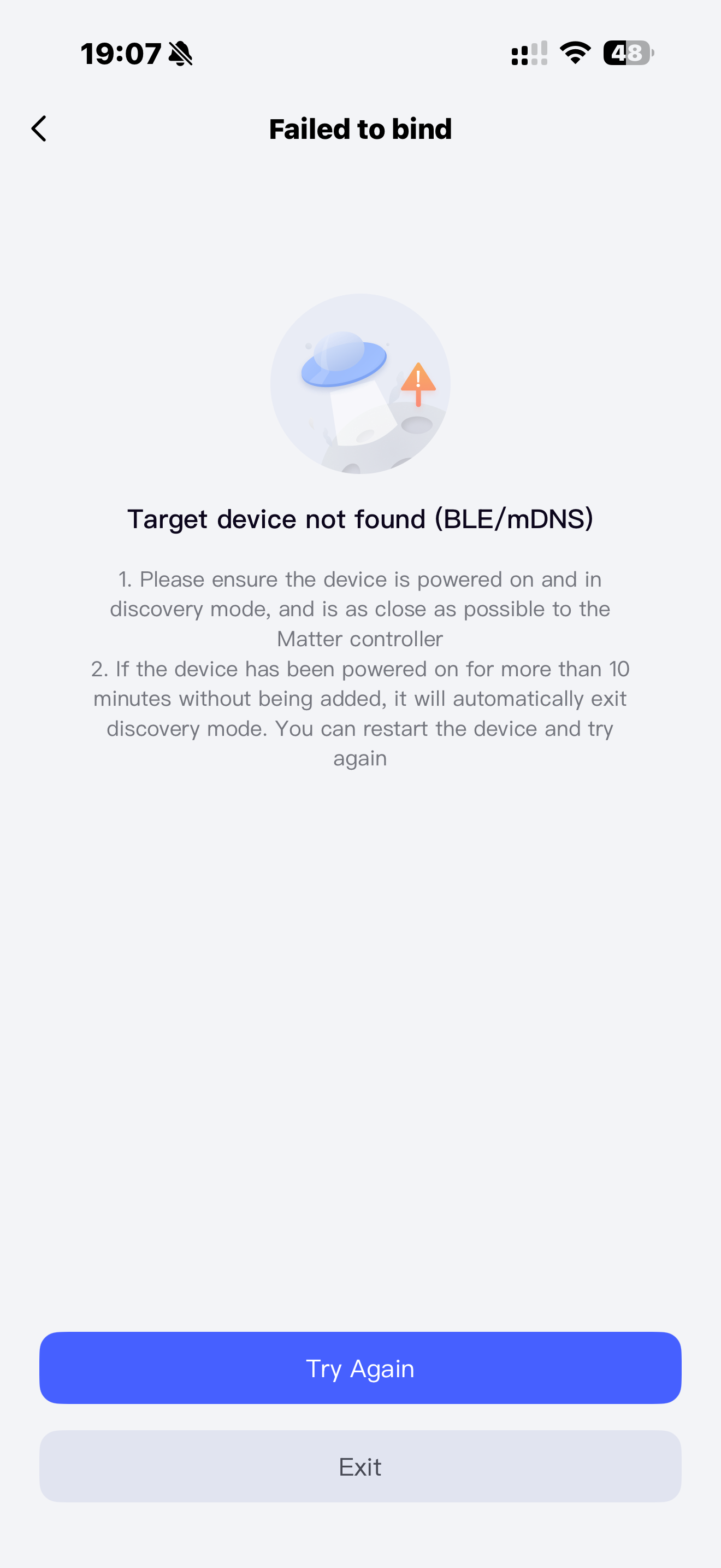 If pairing fails, you’ll see a screen with further options
