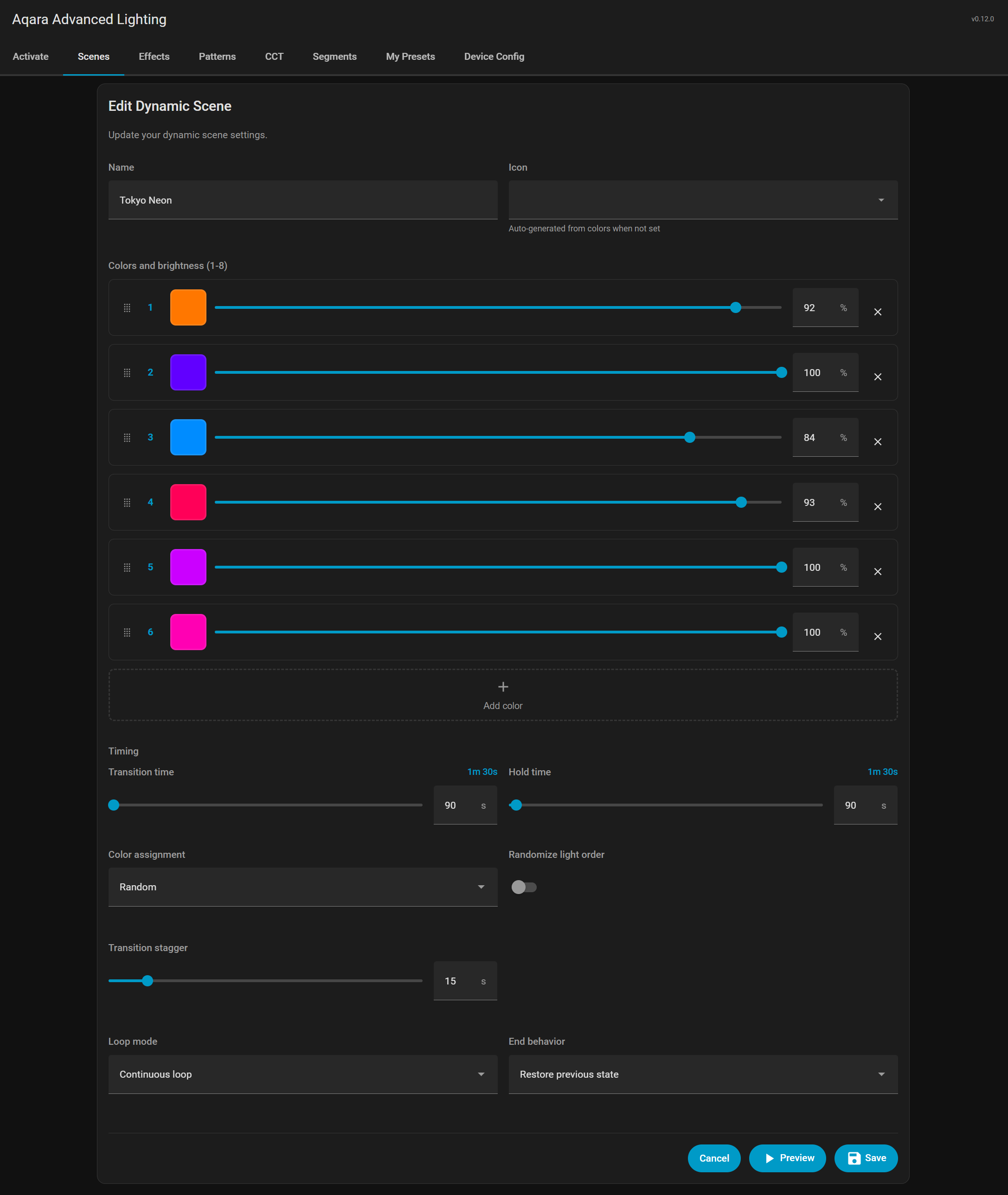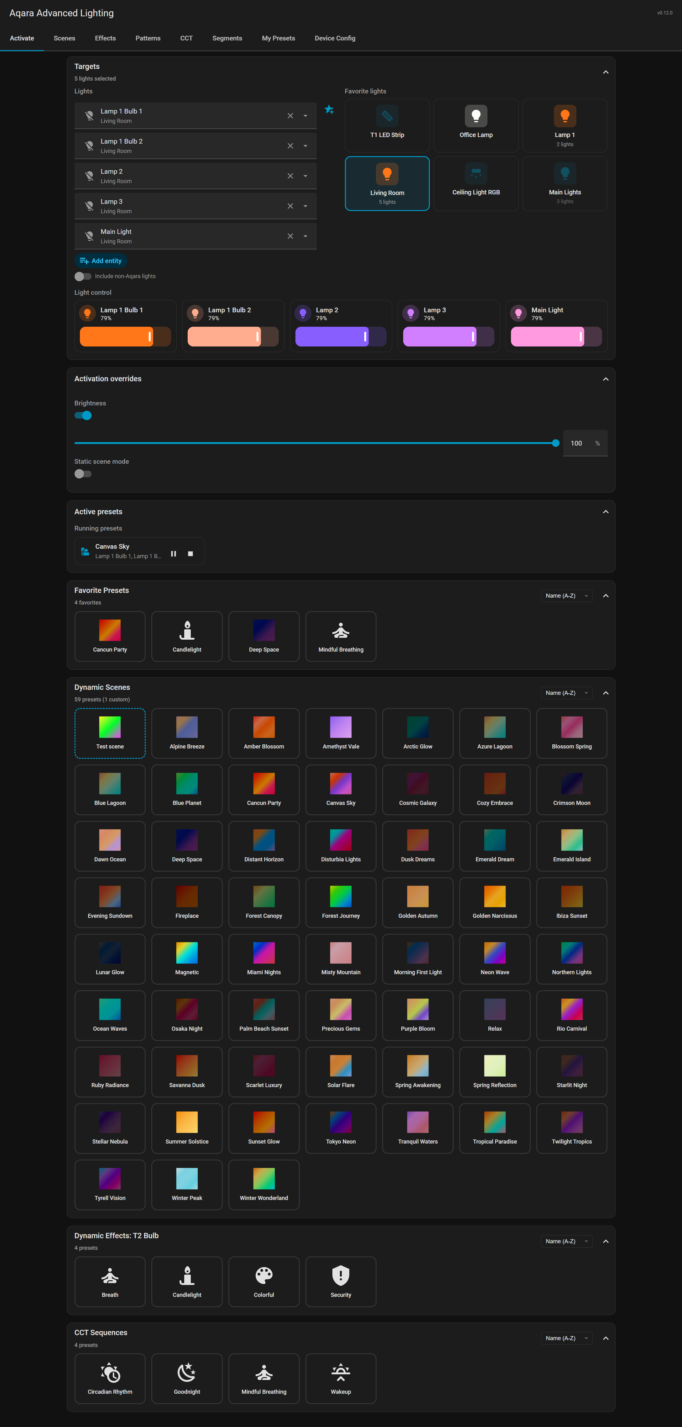 Aqara Advanced Lighting v0.12.0 is now available, the main new feature aimed primarily at T2 bulbs, allowing for the creation of Hue-like dynamic lighting scenes across multiple lights, and comes with 58 built-in dynamic scene presets.