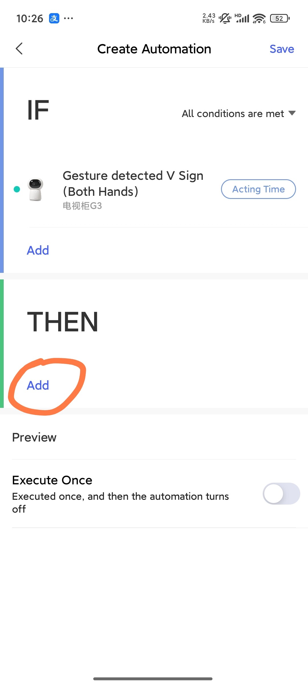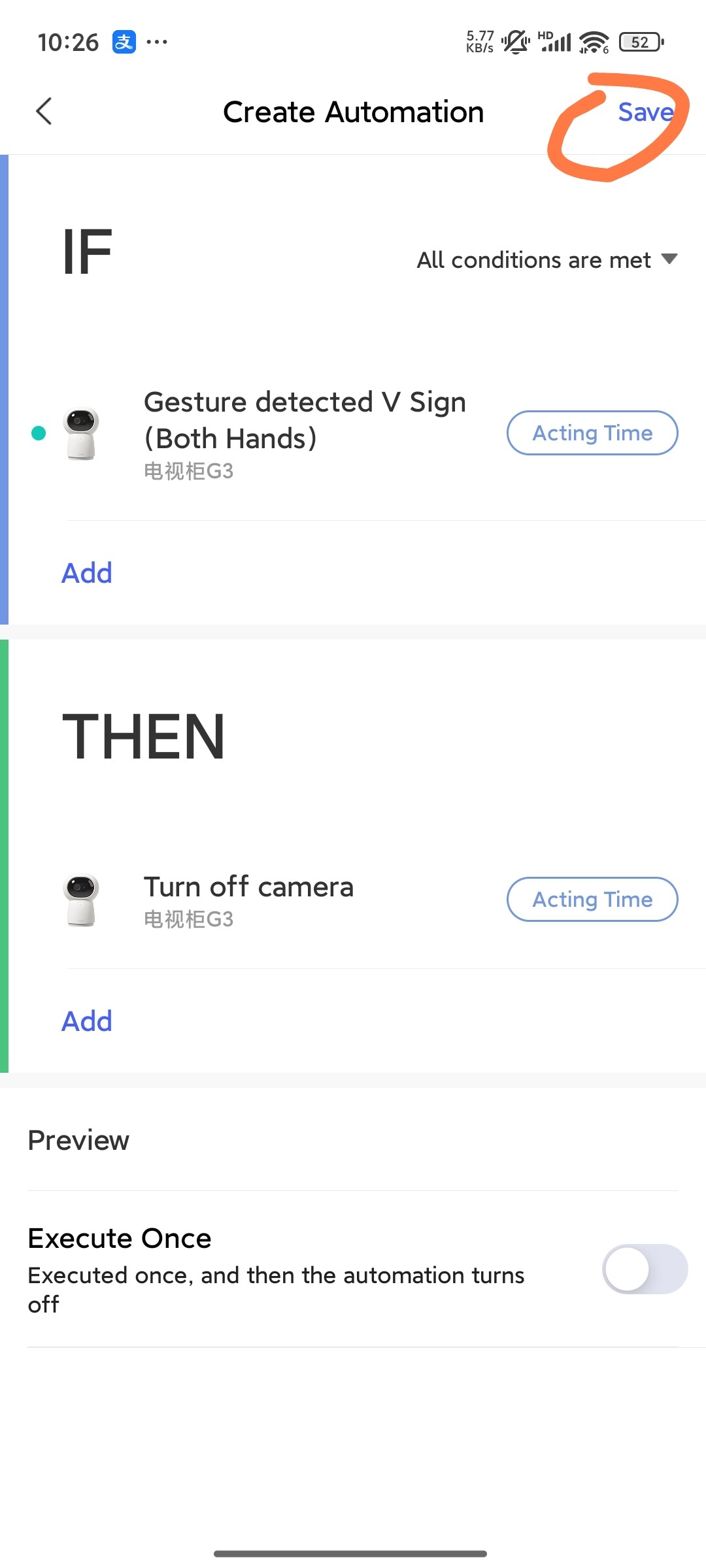 Set Up Automation: Once gesture detection is enabled, you can create automation rules. In the Aqara Home app, go to the automation section where you can select your desired gesture as a trigger. From there, you can configure it to perform specific actions like putting the camera to sleep.